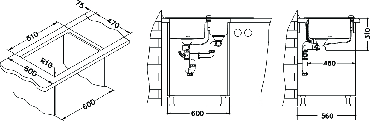 • fabrycznie wykonane otwory Ø 35 mm do montażu baterii, pokrętła Pop-up, dozownika