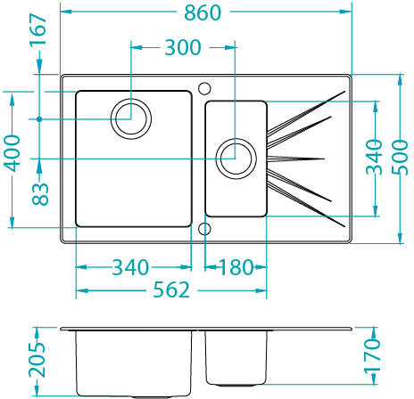 • fabrycznie wykonane otwory Ø 35 mm do montażu baterii, pokrętła Pop-up, dozownika