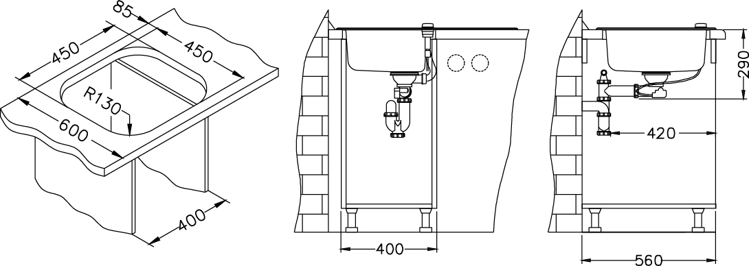 • fabrycznie wykonane otwory Ø 35 mm do montażu baterii, pokrętła Pop-up, dozownika