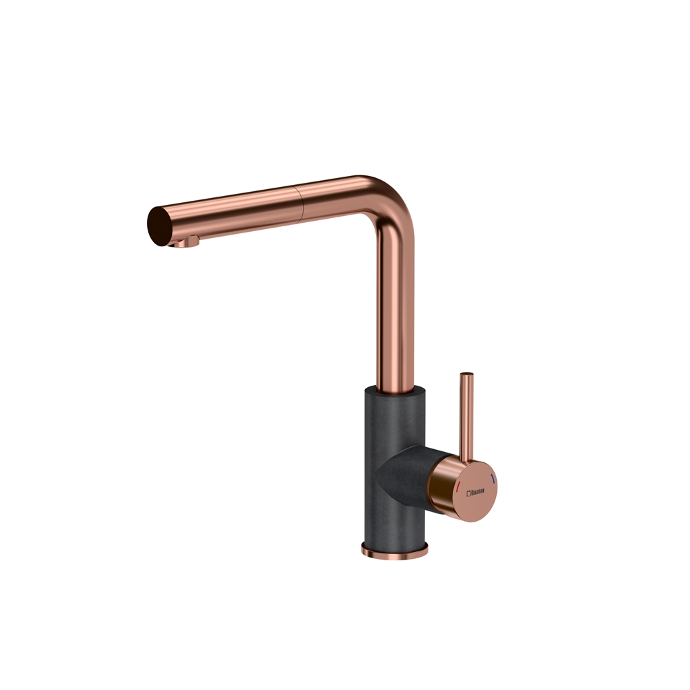 ANGELINA Pull out SteelQ PVD miedziany / czarny metalik Bateria pasująca zarówno do zlewów prostokątnych jak i okrągłych! Elementy baterii wykonane ze stali szlachetnej - gwarantuje wysoką trwałość i zerową zawartość ołowiu. Perlator ECO - zapewnia oszczędność wody. Dźwignia jednouchwytowa– w łatwy i szybki sposób dostosujesz temperaturę i natężenie strumienia wody do swoich potrzeb. Głowica ceramiczna - zmniejsza możliwość powstawania kamiennych osadów i zanieczyszczeń. Mocowanie QFix - zapewnia łatwy i szybki montaż (również na blacie) oraz wysoką stabilność baterii. Wyciągana wylewka – idealna do mycia dużych naczyń. Wyciągany wąż wylewki umożliwia wygodne napełnienie wodą naczynia znajdującego się w i poza zlewozmywakiem jak również umycie blatu. Stal szlachetna – niezwykły materiał Stal szlachetna charakteryzuje się wyjątkowymi właściwościami. Stal szlachetna to materiał, którego powierzchnia jest idealnie gładka (pozbawiona porów), dzięki czemu drobnoustroje i zanieczyszczenia nie przylegają do niej. Jest higieniczna i daje się łatwo wyczyścić. A jednocześnie jest bardzo wytrzymała. Jest to materiał ekologiczny i po przetopieniu może zostać ponownie wykorzystany. Pb FREE – materiał pozbawiony ołowiu Najbardziej niebezpiecznym dla zdrowia zanieczyszczeniem materiałów instalacyjnych jest ołów. Ołów jest bardzo szkodliwym dla zdrowia metalem ciężkim pojawiającym się w wodzie pitnej, która miała kontakt z instalacją wodociągową wykonaną przy użyciu elementów zawierających przekroczone, niedozwolone normami ilości ołowiu. Obecnie dopuszczalna zawartość ołowiu w wodzie nie może przekroczyć wartości maksymalnej 0,01 mg/l. Uznani producenci złączek i armatury stosują do produkcji elementów instalacji wodnych wyłącznie materiały zgodne z normami lub bezołowiowe. Stal szlachetna wykorzystywana do produkcji naszych baterii kuchennych jest wolna nawet od śladowych ilości ołowiu. QFix to prosty i szybki montaż baterii Bateria wyposażona jest standardowo w innowacyjny system montażu QFix, dzięki czemu instalację baterii zarówno na zlewozmywaku jak i na blacie kuchennym można prosto wykonać bez użycia narzędzi. System QFix to oszczędność czasu i nerwów! W komplecie aż 40 cm wężyki podłączeniowe wody 3/8", mocowanie QFix,uszczelki, instrukcja montażu. Bateria zapakowana w wytrzymałe opakowanie tekturowe i specjalną piankę dla lepszej ochrony powierzchni baterii.