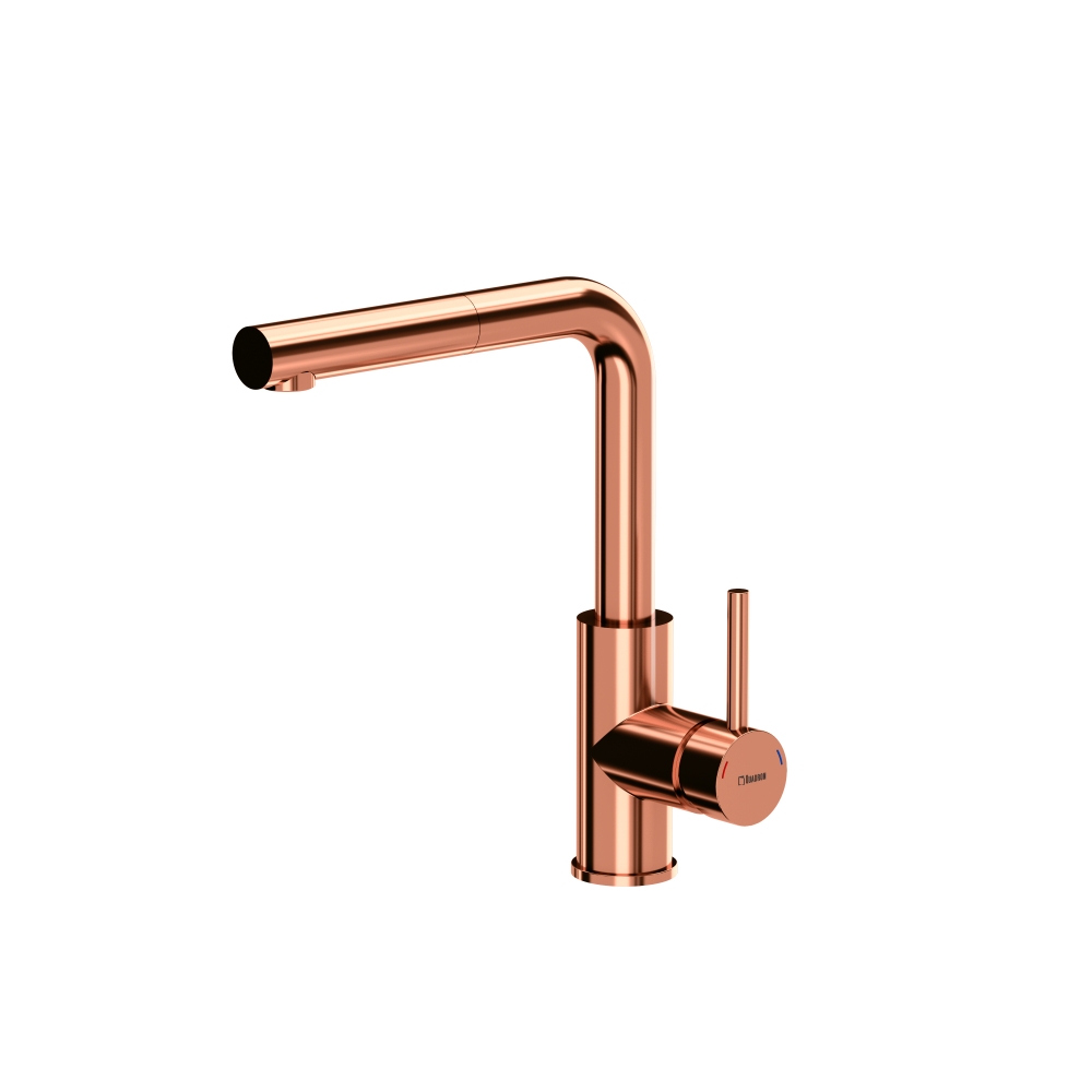 ANGELINA Pull out SteelQ PVD miedziany (WYSOKI POŁYSK) Bateria pasująca zarówno do zlewów prostokątnych jak i okrągłych! Elementy baterii wykonane ze stali szlachetnej - gwarantuje wysoką trwałość i zerową zawartość ołowiu. Perlator ECO - zapewnia oszczędność wody. Dźwignia jednouchwytowa– w łatwy i szybki sposób dostosujesz temperaturę i natężenie strumienia wody do swoich potrzeb. Głowica ceramiczna - zmniejsza możliwość powstawania kamiennych osadów i zanieczyszczeń. Mocowanie QFix - zapewnia łatwy i szybki montaż (również na blacie) oraz wysoką stabilność baterii. Wyciągana wylewka – idealna do mycia dużych naczyń. Wyciągany wąż wylewki umożliwia wygodne napełnienie wodą naczynia znajdującego się w i poza zlewozmywakiem jak również umycie blatu. Stal szlachetna – niezwykły materiał Stal szlachetna charakteryzuje się wyjątkowymi właściwościami. Stal szlachetna to materiał, którego powierzchnia jest idealnie gładka (pozbawiona porów), dzięki czemu drobnoustroje i zanieczyszczenia nie przylegają do niej. Jest higieniczna i daje się łatwo wyczyścić. A jednocześnie jest bardzo wytrzymała. Jest to materiał ekologiczny i po przetopieniu może zostać ponownie wykorzystany. Pb FREE – materiał pozbawiony ołowiu Najbardziej niebezpiecznym dla zdrowia zanieczyszczeniem materiałów instalacyjnych jest ołów. Ołów jest bardzo szkodliwym dla zdrowia metalem ciężkim pojawiającym się w wodzie pitnej, która miała kontakt z instalacją wodociągową wykonaną przy użyciu elementów zawierających przekroczone, niedozwolone normami ilości ołowiu. Obecnie dopuszczalna zawartość ołowiu w wodzie nie może przekroczyć wartości maksymalnej 0,01 mg/l. Uznani producenci złączek i armatury stosują do produkcji elementów instalacji wodnych wyłącznie materiały zgodne z normami lub bezołowiowe. Stal szlachetna wykorzystywana do produkcji naszych baterii kuchennych jest wolna nawet od śladowych ilości ołowiu. QFix to prosty i szybki montaż baterii Bateria wyposażona jest standardowo w innowacyjny system montażu QFix, dzięki czemu instalację baterii zarówno na zlewozmywaku jak i na blacie kuchennym można prosto wykonać bez użycia narzędzi. System QFix to oszczędność czasu i nerwów! W komplecie aż 40 cm wężyki podłączeniowe wody 3/8", mocowanie QFix,uszczelki, instrukcja montażu. Bateria zapakowana w wytrzymałe opakowanie tekturowe i specjalną piankę dla lepszej ochrony powierzchni baterii.