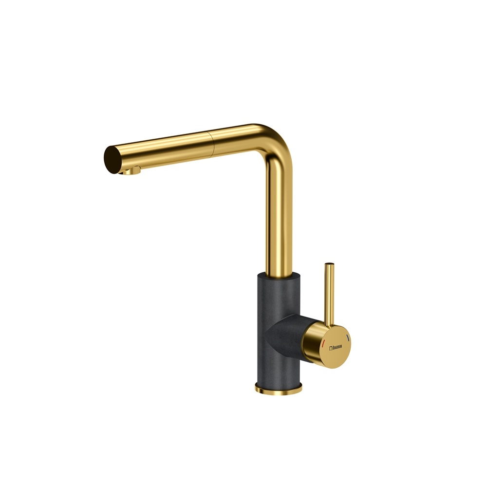 ANGELINA Pull out SteelQ PVD złoty / czarny metalik Bateria pasująca zarówno do zlewów prostokątnych jak i okrągłych! Elementy baterii wykonane ze stali szlachetnej - gwarantuje wysoką trwałość i zerową zawartość ołowiu. Perlator ECO - zapewnia oszczędność wody. Dźwignia jednouchwytowa– w łatwy i szybki sposób dostosujesz temperaturę i natężenie strumienia wody do swoich potrzeb. Głowica ceramiczna - zmniejsza możliwość powstawania kamiennych osadów i zanieczyszczeń. Mocowanie QFix - zapewnia łatwy i szybki montaż (również na blacie) oraz wysoką stabilność baterii. Wyciągana wylewka – idealna do mycia dużych naczyń. Wyciągany wąż wylewki umożliwia wygodne napełnienie wodą naczynia znajdującego się w i poza zlewozmywakiem jak również umycie blatu. Stal szlachetna – niezwykły materiał Stal szlachetna charakteryzuje się wyjątkowymi właściwościami. Stal szlachetna to materiał, którego powierzchnia jest idealnie gładka (pozbawiona porów), dzięki czemu drobnoustroje i zanieczyszczenia nie przylegają do niej. Jest higieniczna i daje się łatwo wyczyścić. A jednocześnie jest bardzo wytrzymała. Jest to materiał ekologiczny i po przetopieniu może zostać ponownie wykorzystany. Pb FREE – materiał pozbawiony ołowiu Najbardziej niebezpiecznym dla zdrowia zanieczyszczeniem materiałów instalacyjnych jest ołów. Ołów jest bardzo szkodliwym dla zdrowia metalem ciężkim pojawiającym się w wodzie pitnej, która miała kontakt z instalacją wodociągową wykonaną przy użyciu elementów zawierających przekroczone, niedozwolone normami ilości ołowiu. Obecnie dopuszczalna zawartość ołowiu w wodzie nie może przekroczyć wartości maksymalnej 0,01 mg/l. Uznani producenci złączek i armatury stosują do produkcji elementów instalacji wodnych wyłącznie materiały zgodne z normami lub bezołowiowe. Stal szlachetna wykorzystywana do produkcji naszych baterii kuchennych jest wolna nawet od śladowych ilości ołowiu. QFix to prosty i szybki montaż baterii Bateria wyposażona jest standardowo w innowacyjny system montażu QFix, dzięki czemu instalację baterii zarówno na zlewozmywaku jak i na blacie kuchennym można prosto wykonać bez użycia narzędzi. System QFix to oszczędność czasu i nerwów! W komplecie aż 40 cm wężyki podłączeniowe wody 3/8", mocowanie QFix,uszczelki, instrukcja montażu. Bateria zapakowana w wytrzymałe opakowanie tekturowe i specjalną piankę dla lepszej ochrony powierzchni baterii.