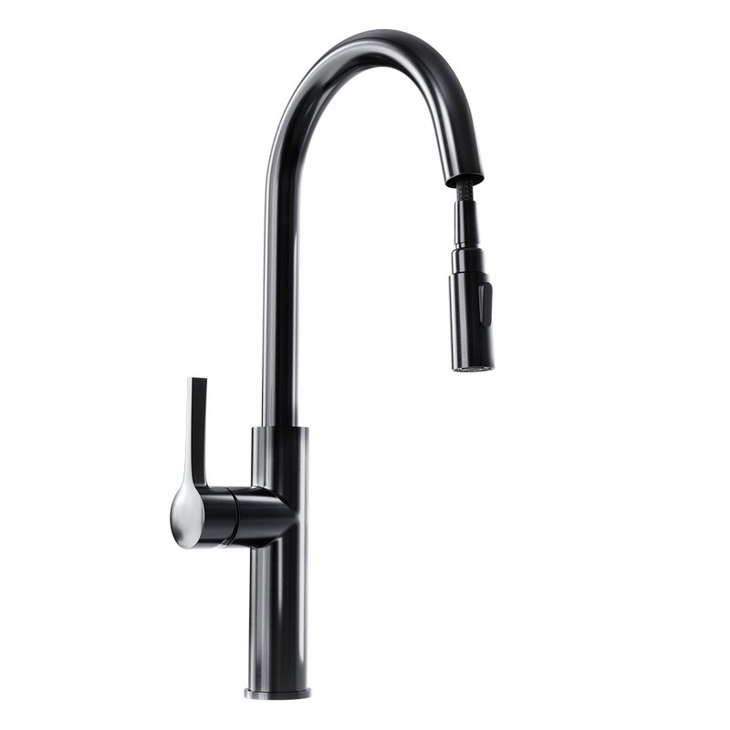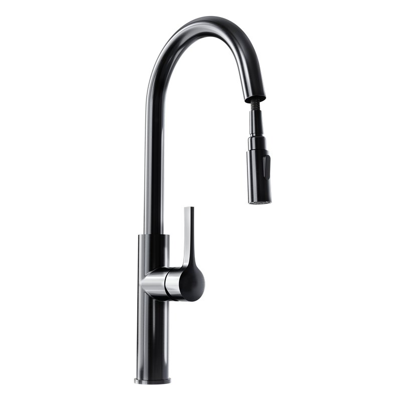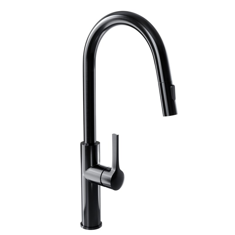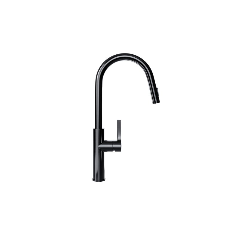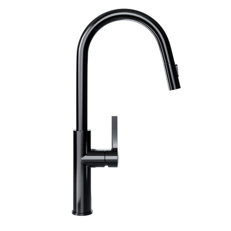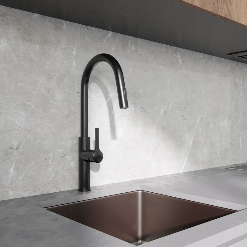 Krótki opis: bateria kuchenna z wyciąganą wylewką. Wykonanie: mosiądz. Uchwyt: stop cynku. Linia: DesignCzarna bateria kuchenna z wyciąganą wylewkąBateria kuchenna Divio Black zachwyca pięknym designem i funkcjonalnością. Została wykonana z dbałością o szczegóły, dlatego doskonale uzupełni kuchenną przestrzeń. Ogromną zaletą baterii jest wyciągana wylewka z solidnym mocowaniem, która pozwoli zadbać o najwyższy komfort zmywania. Elegancki, stylowy kształt i czarny kolor sprawiają, że bateria znajdzie zastosowanie zarówno w nowoczesnych, jak i klasycznych kuchniach.Zestaw zawiera: bateria, wężyki, zestaw mocujący, uszczelki.Zalety i korzyści dla użytkownika Wygodna w użytkowaniu - Divio to bateria z wyciąganą wylewką. Dzięki tej funkcji możesz skierować strumień wody, tam gdzie tego potrzebujesz. Wygodnie umyjesz naczynia, sprzątniesz strefę wokół zlewu, czy napełnisz wysoki garnek wodą. Wyjątkowe wzornictwo - bateria zlewozmywakowa Divio jest wykończona w kolorze czarnym, dlatego będzie eleganckim akcentem w kuchni. Trwała konstrukcja - zastosowany do produkcji baterii mosiądz cechuje się wysoką odpornością, co pozwoli użytkować baterię przez długie lata. Malowanie metodą PVD zwiększa odporność na zarysowanie, dzięki czemu przy odpowiedniej pielęgnacji nawet po długim czasie bateria będzie prezentować się jak nowa.Przeznaczenie: Bateria przeznaczona jest do użytku ze zlewozmywakami kuchennymi. Może być również montowana bezpośrednio na blacie.Materiały: Bateria została wykonana z mosiądzu, na który naniesiona została powłoka PVD w kolorze czarnym. Uchwyt jest ze stopu cynku.ID#