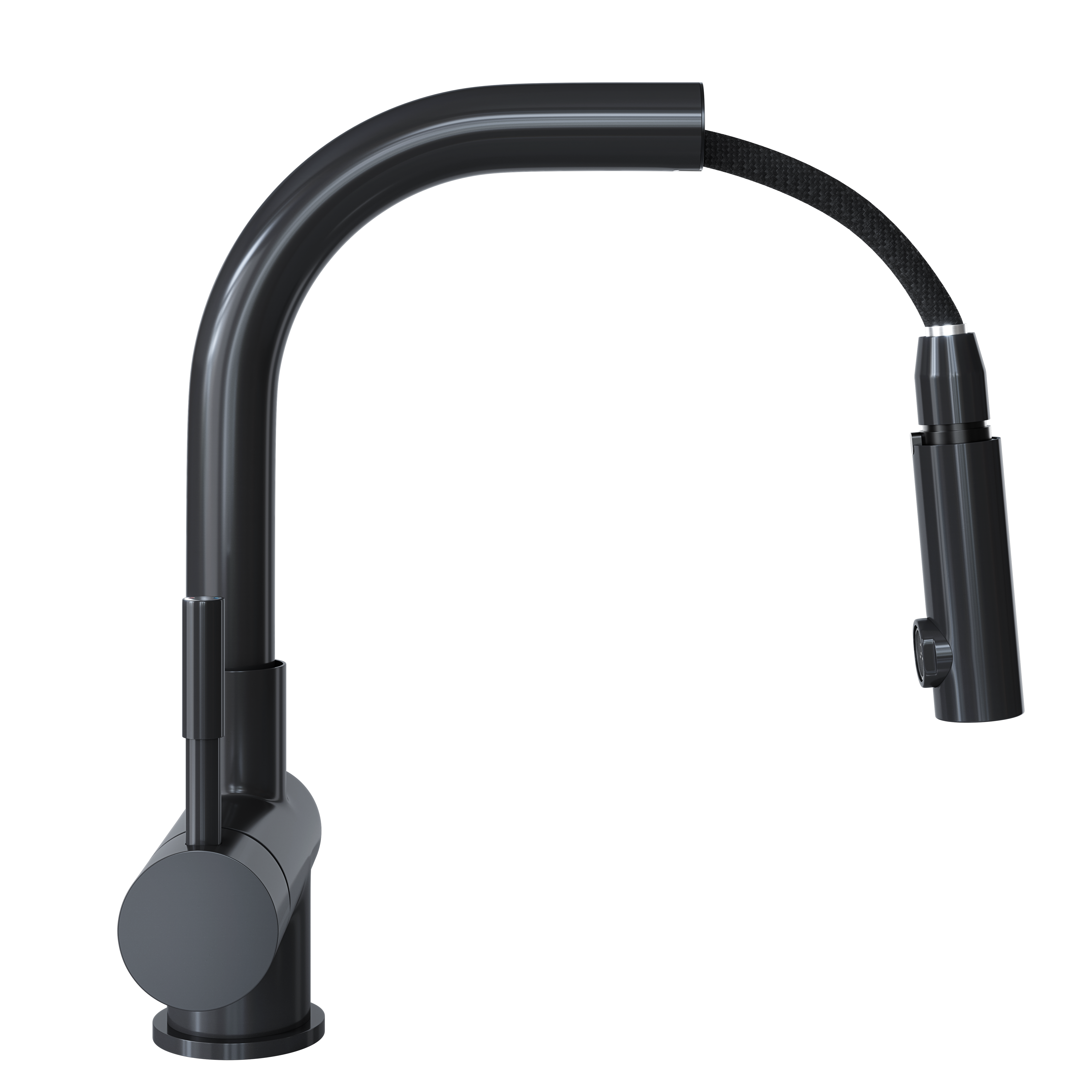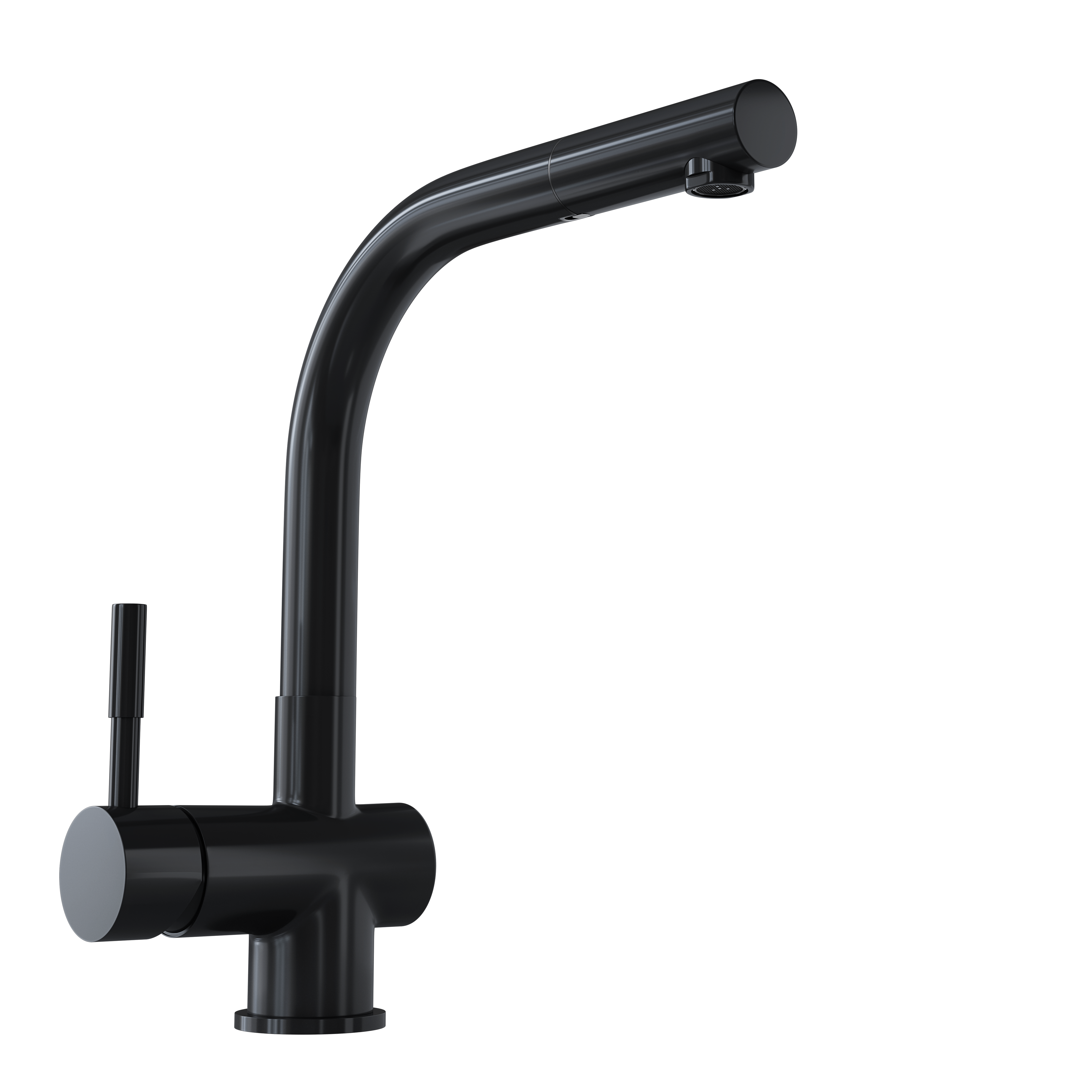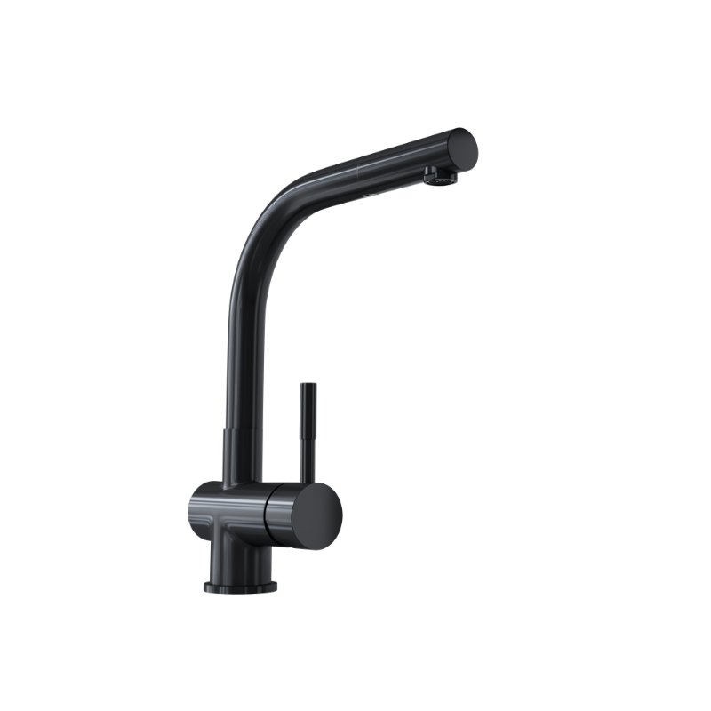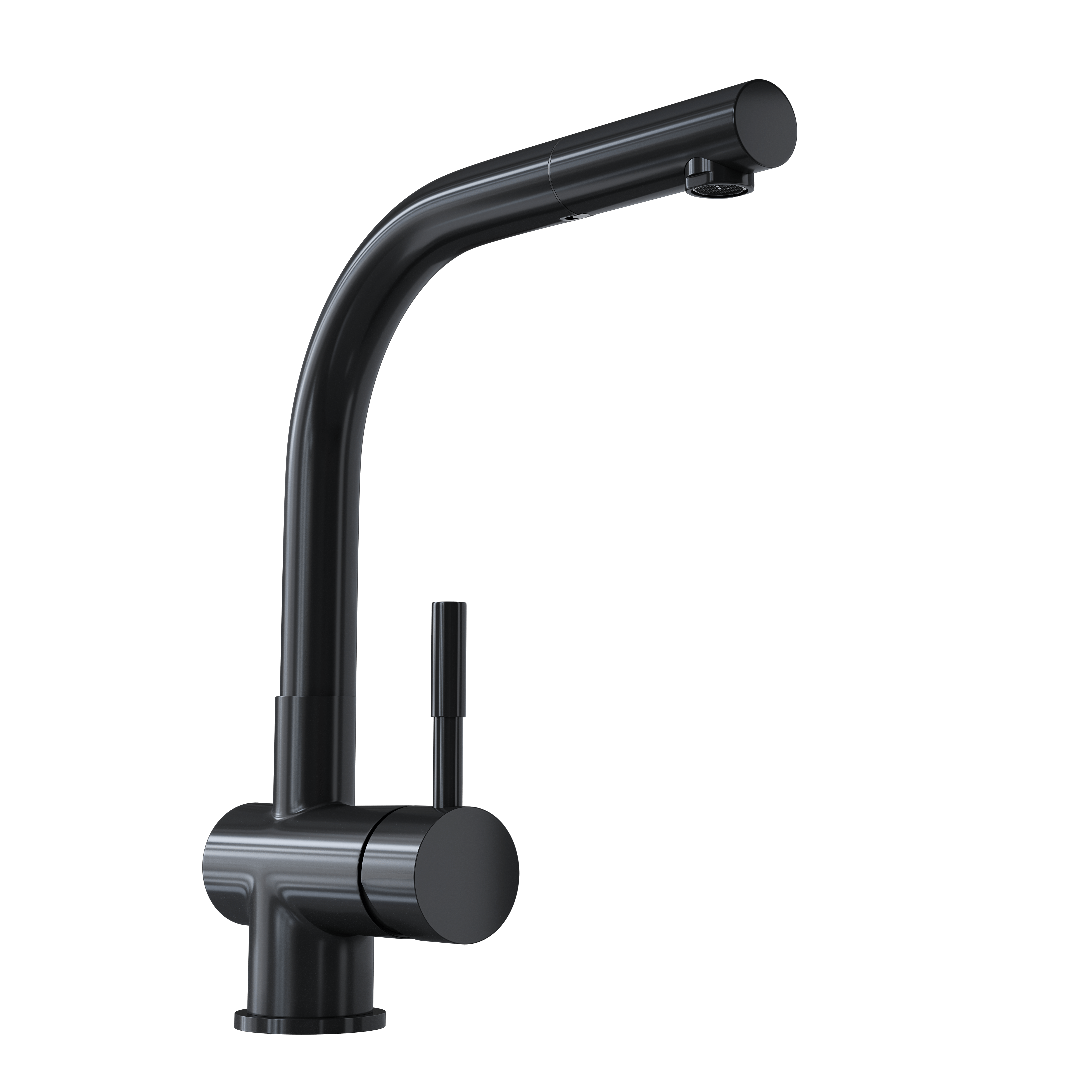Krótki opis: bateria kuchenna w wyciąganą wylewką. Wykonanie: mosiądz. Uchwyt: stop cynku. Linia: EXCLUSIVEBateria antracyt z wyciąganą wylewkąBateria kuchenna Lobio Anthracite zachwyca pięknym designem i funkcjonalnością. Została wykonana z dbałością o szczegóły, dlatego doskonale uzupełni kuchenną przestrzeń. Ogromną zaletą baterii jest wyciągana wylewka z solidnym mocowaniem, która pozwoli zadbać o najwyższy komfort zmywania. Elegancki, stylowy kształt i kolor antracyt sprawiają, że bateria znajdzie zastosowanie zarówno w nowoczesnych, jak i klasycznych kuchniach.Zestaw zawiera: bateria, wężyki, zestaw mocujący, uszczelki.Zalety i korzyści dla użytkownika Wygodna w użytkowaniu - Lobio to bateria z wyciąganą wylewką. Dzięki tej funkcji możesz skierować strumień wody, tam gdzie tego potrzebujesz. Wygodnie umyjesz naczynia, sprzątniesz strefę wokół zlewu, czy napełnisz wysoki garnek wodą. Wyjątkowe wzornictwo - bateria zlewozmywakowa Lobio jest wykończona w kolorze antracyt, dlatego będzie eleganckim akcentem w kuchni. Trwała konstrukcja - zastosowany do produkcji baterii mosiądz cechuje się wysoką odpornością, co pozwoli użytkować baterię przez długie lata. Malowanie metodą PVD zwiększa odporność na zarysowanie, dzięki czemu przy odpowiedniej pielęgnacji nawet po długim czasie bateria będzie prezentować się jak nowa.Przeznaczenie: Bateria przeznaczona jest do użytku ze zlewozmywakami kuchennymi. Może być również montowana bezpośrednio na blacie.Materiały: Bateria została wykonana z mosiądzu malowana metodą PVD na kolor antracyt.ID#453