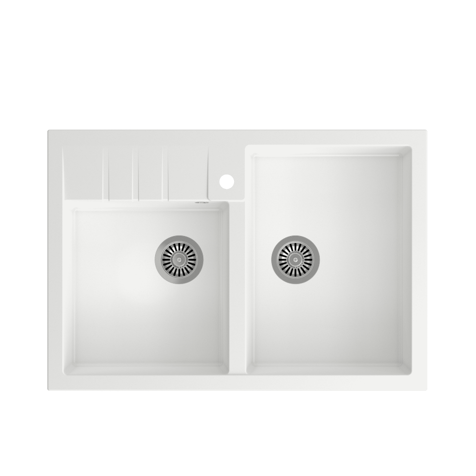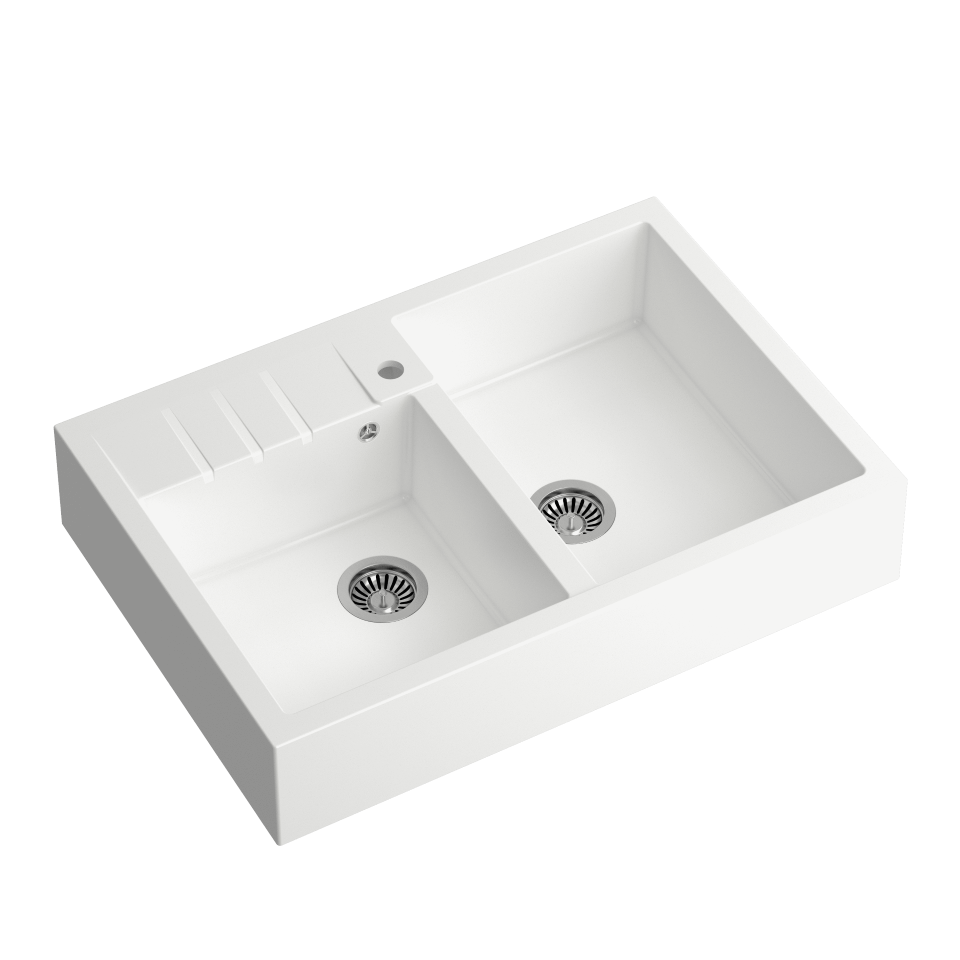 BILL 120 GraniteQ BILL 120 GraniteQ to pierwszy model w stylu anglosaskim w naszej ofercie. Dwie duże komory pozwalają cieszyć się niemal nieograniczonym miejscem do pracy, a specjalnie zaprojektowana powierzchnia ociekowa umożliwia postawienie płynu do zmywania, odłożenie gąbki lub ściereczki, a nawet odstawienie do ociekania mniejszych naczyń. Wzornictwo nowego modelu marki Quadron otwiera szerokie perspektywy zastosowania produktu zarówno w kuchniach rustykalnych, jak i tych bardziej nowoczesnych. Zlewozmywak doskonale zintegruje się z baterią w konwencji retro, jednak równie perfekcyjnie pozwoli się skomponować z baterią o progresywnym wzornictwie Połączenie modelu BILL 120 GraniteQ z elementami stalowymi powlekanymi super twardym nano PVD zdecydowanie wzbogaca możliwości budowania kreatywnych rozwiązań w kuchni. Podaruj sobie odrobinę luksusu i pozwól sycić swoje zmysły lśniącymi elementami w odcieniach miedzi i złota. Zlewozmywak wykonany z GraniteQ gwarantuje najwyższą higieniczność i trwałość . Nowoczesne wzornictwo – dostosowane do aktualnych trendów. GraniteQ – zapewnia dużą twardość, trwałość i higieniczność powierzchni Rozetka przelewu również wykonana jest ze stali szlachetnej SteelQ w kolorze dopasowanym do koloru pozostałych elementów co jeszcze bardziej podkreśla jego urodę. Zlewozmywak wyposażony jest w odpływ ze stali szlachetnej SteelQ w kolorze dopasowanym do pozostałych elementów co nadaje produktowi elegancki wygląd oraz w syfon z możliwością podłączenia zmywarki lub pralki Głębokie i pojemne komory zlewozmywaków Quadron to ich cecha wyróżniająca, która zapewnia duży komfort użytkowania. Łatwy montaż - w komplecie zaczepy mocujące. Wersja Premium Głębokie komory zlewozmywaków Quadron to ich cecha wyróżniająca. Pojemna komora to przede wszystkim duży komfort użytkowania. Zmywanie dużych garnków czy blach nie stanowi problemu dzięki temu, że pojemność zlewozmywaka jest zwiększona o kilka litrów. Zlewozmywak wyposażony jest w odpływ ze stali szlachetnej SteelQ . GraniteQ - wygląd & trwałość Produkty wykonane z GraniteQ zapewniają nowoczesny wygląd i długowieczność produktu. Są łatwe do utrzymania w czystości, odporne na wysokie temperatury (gorące garnki) oraz tak częste w kuchni nagłe jej zmiany (wrząca i zimna woda), odporne na działanie czynników chemicznych oraz wiele rodzajów osadów (np. po kawie czy herbacie). GraniteQ – wytrzymałość & higiena Materiał GraniteQ stworzony jest z drobnych cząsteczek granitu (75-80%) połączonych ze sobą za pomocą wysokiej jakości spoiwa (20-25%), dzięki czemu zlewozmywak charakteryzuje się wyjątkową wytrzymałością i odpornością. Zastosowanie bardzo drobnych cząsteczek granitu minimalizuje przestrzeń wypełnioną spoiwem, dzięki czemu udało się uzyskać zlewozmywak jedwabiście gładki i delikatny w dotyku, co również ma ogromne znaczenie podczas czyszczenia i konserwacji, ale przede wszystkim dla higieny i zachowania czystości. GraniteQ – metaliczny blask GraniteQ to nowoczesny materiał w opalizujących kolorach uzyskanych dzięki domieszce metalicznych drobinek. Nawet najbardziej wymagający użytkownicy będą usatysfakcjonowani gdy światło z oświetlenia umieszczonego nad blatem sprawi, iż kuchnia zabłyszczy delikatnym połyskiem swojej nowej biżuterii: zlewozmywaka marki Quadron. Efekt ten zostanie spotęgowany dzięki dodaniu baterii, odpływu i przelewu wykonanych ze stali szlachetnej SteelQ .