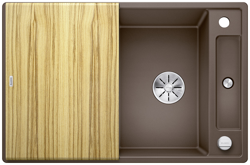 BLANCO AXIA III posiada przynajmniej pięć nowych zalet: większą pojemność komory, lepsze wykorzystanie dostępnej przestrzeni, innowacyjne akcesoria, płaskie krawędzie i nowy system odpływowy InFino®. Nawet ci z Państwa, którzy poszukują wyjątkowo dużej komory, znajdą ja w nowej wersji zlewozmywaka BLANCO AXIA 6 S III XL.