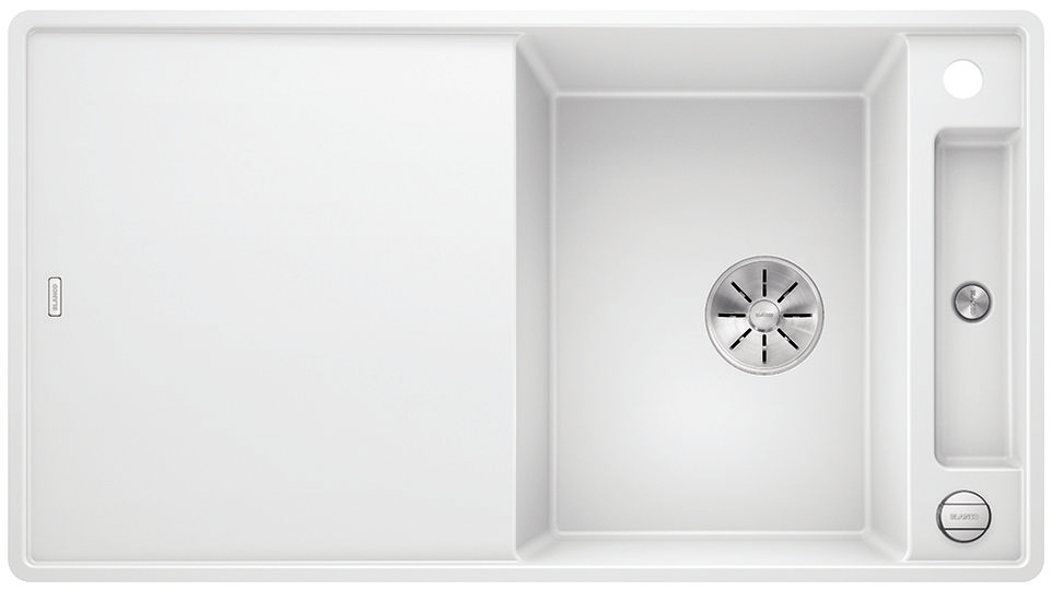 BLANCO AXIA III posiada przynajmniej pięć nowych zalet: większą pojemność komory, lepsze wykorzystanie dostępnej przestrzeni, innowacyjne akcesoria, płaskie krawędzie i nowy system odpływowy InFino®. Nawet ci z Państwa, którzy poszukują wyjątkowo dużej komory, znajdą ja w nowej wersji zlewozmywaka BLANCO AXIA 6 S III XL.