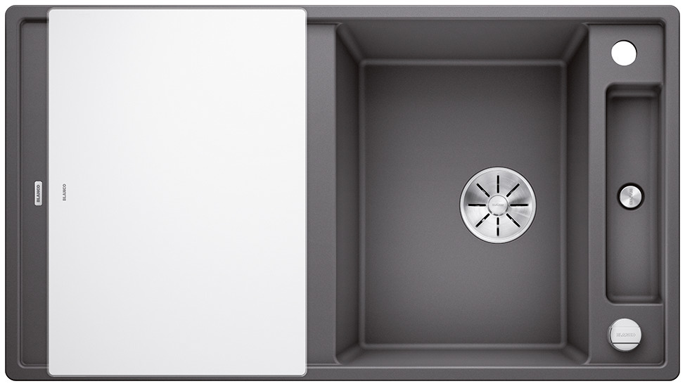 BLANCO AXIA III posiada przynajmniej pięć nowych zalet: większą pojemność komory, lepsze wykorzystanie dostępnej przestrzeni, innowacyjne akcesoria, płaskie krawędzie i nowy system odpływowy InFino®. Nawet ci z Państwa, którzy poszukują wyjątkowo dużej komory, znajdą ja w nowej wersji zlewozmywaka BLANCO AXIA 6 S III XL.