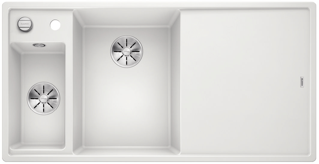 BLANCO AXIA III posiada przynajmniej pięć nowych zalet: większą pojemność komory, lepsze wykorzystanie dostępnej przestrzeni, innowacyjne akcesoria, płaskie krawędzie i nowy system odpływowy InFino®. Nawet ci z Państwa, którzy poszukują wyjątkowo dużej komory, znajdą ja w nowej wersji zlewozmywaka BLANCO AXIA 6 S III XL.
