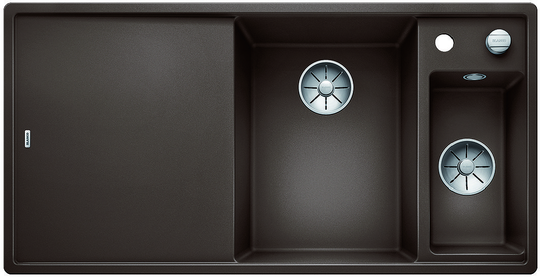 BLANCO AXIA III posiada przynajmniej pięć nowych zalet: większą pojemność komory, lepsze wykorzystanie dostępnej przestrzeni, innowacyjne akcesoria, płaskie krawędzie i nowy system odpływowy InFino®. Nawet ci z Państwa, którzy poszukują wyjątkowo dużej komory, znajdą ja w nowej wersji zlewozmywaka BLANCO AXIA 6 S III XL.