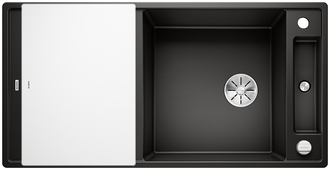 BLANCO AXIA III posiada przynajmniej pięć nowych zalet: większą pojemność komory, lepsze wykorzystanie dostępnej przestrzeni, innowacyjne akcesoria, płaskie krawędzie i nowy system odpływowy InFino®. Nawet ci z Państwa, którzy poszukują wyjątkowo dużej komory, znajdą ja w nowej wersji zlewozmywaka BLANCO AXIA 6 S III XL.
