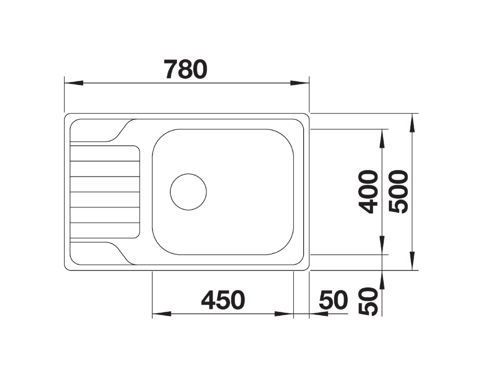 Wymiary zlewozmywaka: 780/500 mm