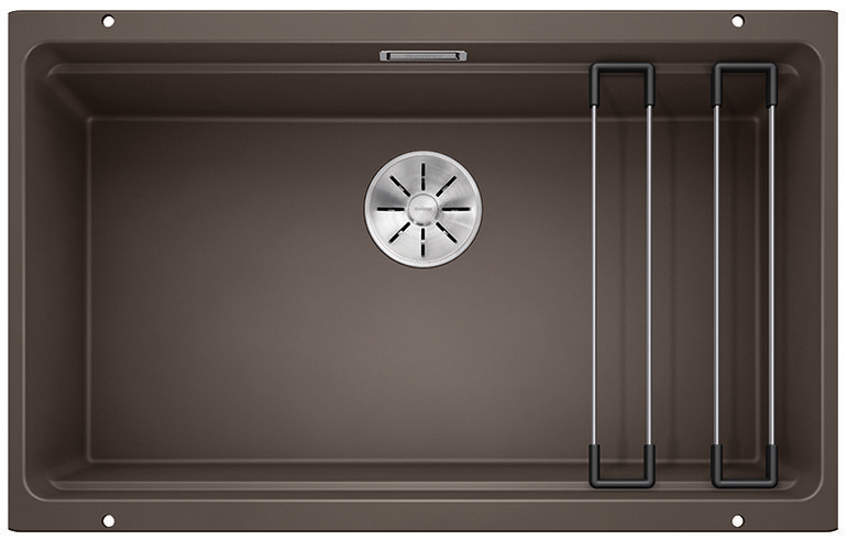 BLANCO ETAGON to wyjątkowy zlewozmywak posiadający wewnątrz komory wyprofilowaną krawędź, na której można oprzeć bardzo stabilne szyny ze stali szlachetnej. Na takich szynach postawimy np. pojemniki, garnki lub patelnie. Warzywa pokrojone na desce do krojenia, opartej na krawędzi komory, łatwo zsuniemy bezpośrednio do naczynia ustawionego na szynach w komorze. Dzięki temu zyskujemy dodatkowy funkcjonalny poziom, a zwykła pojedyncza komora staje się samowystarczalnym centrum kuchennym. Do tego modelu zlewozmywaka można dobrać praktyczną narożną odsączarkę, przenośny ociekacz i deskę do krojenia, która po zakryciu nią komory będzie stanowiła przedłużenie zlewozmywaka. BLANCO Etagon jest dostępny w wielu wariantach kolorystycznych w opcji z Silgranitu, a także w 4 kolorach w ceramice oraz w wersji ze stali szlachetnej.
