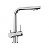 woda filtrowana i niefiltrowana z jednej wylewki z osobnymi kanałami przepływu. Posiada oddzielną dźwignię z prawej strony do wody mieszanej (ciepłej i zimnej ) oraz dźwignię do wody filtrowanej z lewej strony. Wymaga tylko jednego otworu 35 mm do zamocowania baterii, dzięki czemu mamy rozbudowany system dostarczania wody i zaoszczędzamy miejsce. Wyciągana wylewka ułatwia napełnianie naczyń.