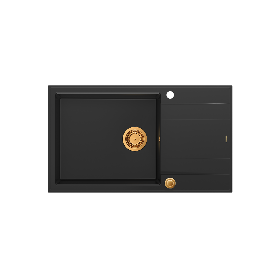 EVAN 136 XL GraniteQ zlewozmywak z syfonem Push To Open 1-komorowy z/o (860x500x210; kom. 420x490) pure carbon / elementy miedziane