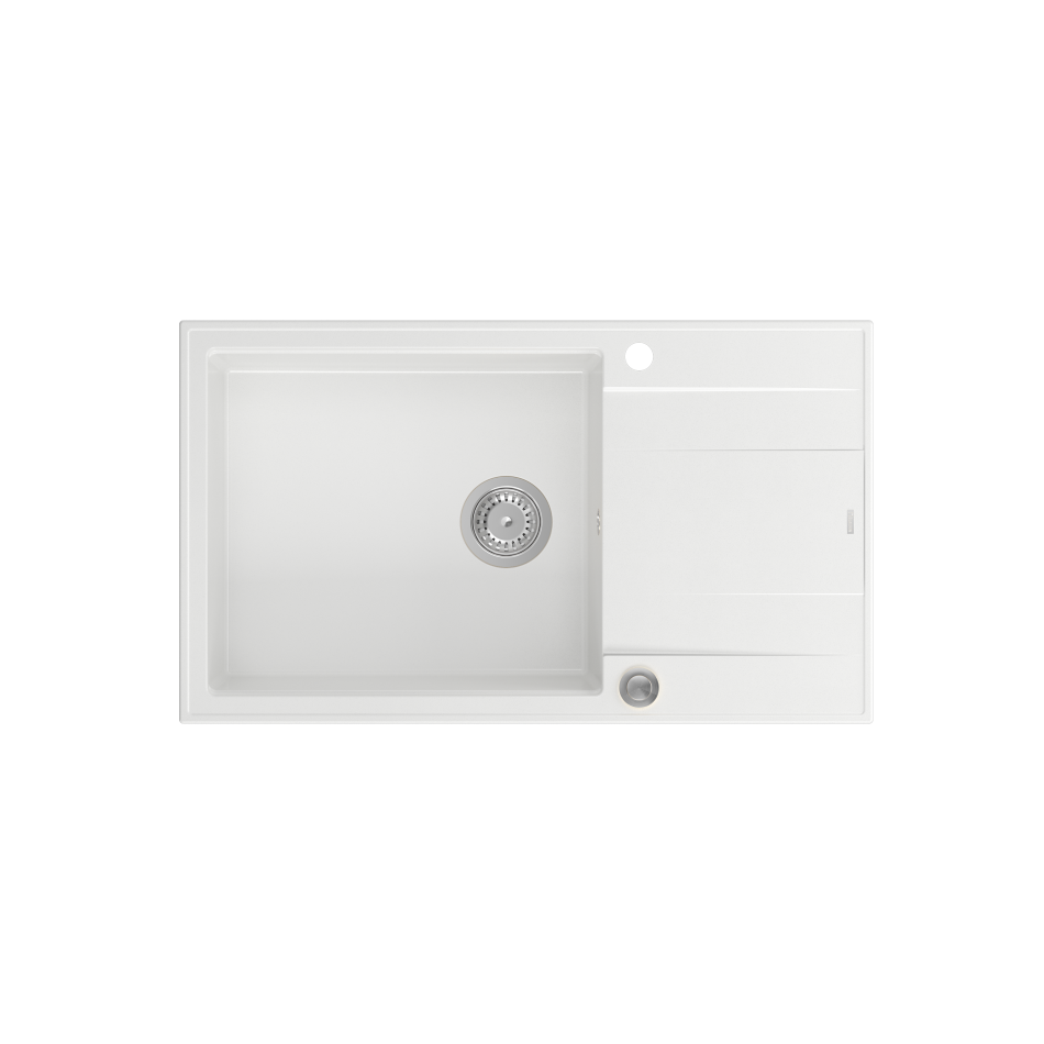 EVAN 136 XL GraniteQ zlewozmywak z syfonem Push To Open 1-komorowy z/o (860x500x210; kom. 420x490) snow white / elementy stalowe