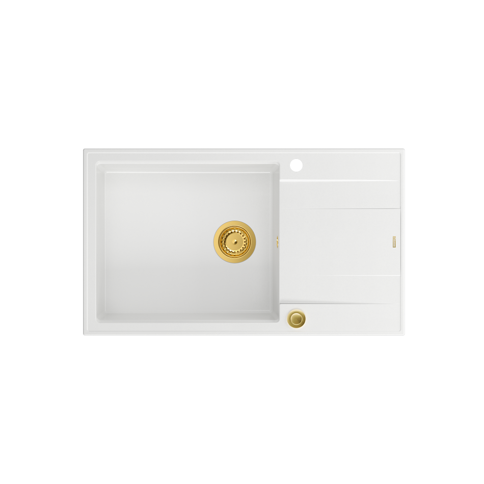 EVAN 136 XL GraniteQ zlewozmywak z syfonem Push To Open 1-komorowy z/o (860x500x210; kom. 420x490) snow white / elementy złoteEVAN 136 XL GraniteQ zlewozmywak z syfonem Push To Open 1-komorowy z/o (860x500x210; kom. 420x490) snow white / elementy złote