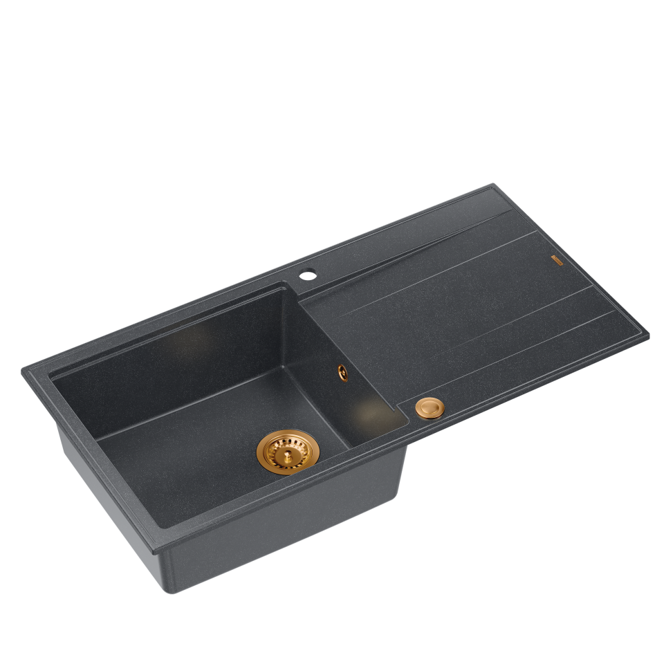 Strona główna » QUADRON » EVAN 146 XL GraniteQ zlewozmywak z syfonem Push 2 Open 1-komorowy z/o (1000x500x210; kom. 420x480) black diamond / elementy miedziane