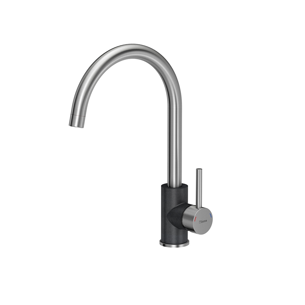 INGRID SteelQ stal szlachetna / czarny metalik Stalowa/Czarny bateria idealnie pasuje do najnowszych trendów! Elementy baterii wykonane ze stali szlachetnej - gwarantuje wysoką trwałość i zerową zawartość ołowiu. Wylewka obrotowa 360° - umożliwia swobodne używanie. Perlator ECO - zapewnia oszczędność wody. Dźwignia jednouchwytowa– w łatwy i szybki sposób dostosujesz temperaturę i natężenie strumienia wody do swoich potrzeb. Głowica ceramiczna - zmniejsza możliwość powstawania kamiennych osadów i zanieczyszczeń. Mocowanie QFix - zapewnia łatwy i szybki montaż (również na blacie) oraz wysoką stabilność baterii. Stal szlachetna – niezwykły materiał Stal szlachetna charakteryzuje się wyjątkowymi właściwościami. Stal szlachetna to materiał, którego powierzchnia jest idealnie gładka (pozbawiona porów), dzięki czemu drobnoustroje i zanieczyszczenia nie przylegają do niej. Jest higieniczna i daje się łatwo wyczyścić. A jednocześnie jest bardzo wytrzymała. Jest to materiał ekologiczny i po przetopieniu może zostać ponownie wykorzystany. Pb FREE – materiał pozbawiony ołowiu Najbardziej niebezpiecznym dla zdrowia zanieczyszczeniem materiałów instalacyjnych jest ołów. Ołów jest bardzo szkodliwym dla zdrowia metalem ciężkim pojawiającym się w wodzie pitnej, która miała kontakt z instalacją wodociągową wykonaną przy użyciu elementów zawierających przekroczone, niedozwolone normami ilości ołowiu. Obecnie dopuszczalna zawartość ołowiu w wodzie nie może przekroczyć wartości maksymalnej 0,01 mg/l. Uznani producenci złączek i armatury stosują do produkcji elementów instalacji wodnych wyłącznie materiały zgodne z normami lub bezołowiowe. Stal szlachetna wykorzystywana do produkcji naszych baterii kuchennych jest wolna nawet od śladowych ilości ołowiu. QFix to prosty i szybki montaż baterii Bateria wyposażona jest standardowo w innowacyjny system montażu QFix, dzięki czemu instalację baterii zarówno na zlewozmywaku jak i na blacie kuchennym można prosto wykonać bez użycia narzędzi. System QFix to oszczędność czasu i nerwów! W komplecie aż 40 cm wężyki podłączeniowe wody 3/8", mocowanie QFix, uszczelki, instrukcja montażu. Bateria zapakowana w wytrzymałe opakowanie tekturowe i specjalną piankę dla lepszej ochrony powierzchni baterii.