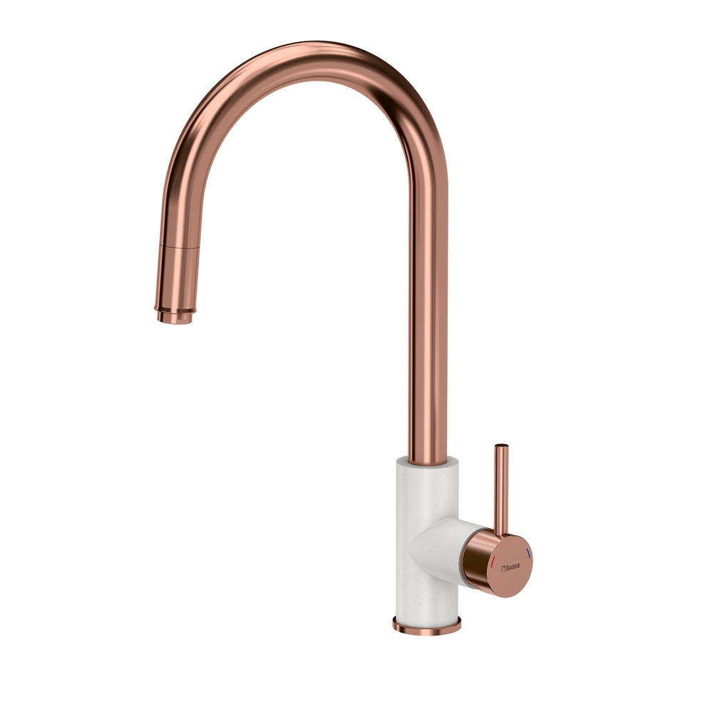 JENNIFER Pull out SteelQ PVD miedziany / biały metalik Miedziana/Biała bateria idealnie pasuje do najnowszych trendów! Elementy baterii wykonane ze stali szlachetnej - gwarantuje wysoką trwałość i zerową zawartość ołowiu. Perlator ECO - zapewnia oszczędność wody. Dźwignia jednouchwytowa– w łatwy i szybki sposób dostosujesz temperaturę i natężenie strumienia wody do swoich potrzeb. Głowica ceramiczna - zmniejsza możliwość powstawania kamiennych osadów i zanieczyszczeń. Mocowanie QFix - zapewnia łatwy i szybki montaż (również na blacie) oraz wysoką stabilność baterii. Wyciągana wylewka – idealna do mycia dużych naczyń. Wyciągany wąż wylewki umożliwia wygodne napełnienie wodą naczynia znajdującego się w i poza zlewozmywakiem jak również umycie blatu. Pb FREE – materiał pozbawiony ołowiu Najbardziej niebezpiecznym dla zdrowia zanieczyszczeniem materiałów instalacyjnych jest ołów. Ołów jest bardzo szkodliwym dla zdrowia metalem ciężkim pojawiającym się w wodzie pitnej, która miała kontakt z instalacją wodociągową wykonaną przy użyciu elementów zawierających przekroczone, niedozwolone normami ilości ołowiu. Obecnie dopuszczalna zawartość ołowiu w wodzie nie może przekroczyć wartości maksymalnej 0,01 mg/l. Uznani producenci złączek i armatury stosują do produkcji elementów instalacji wodnych wyłącznie materiały zgodne z normami lub bezołowiowe. Stal szlachetna wykorzystywana do produkcji naszych baterii kuchennych jest wolna nawet od śladowych ilości ołowiu QFix to prosty i szybki montaż baterii Bateria wyposażona jest standardowo w innowacyjny system montażu QFix, dzięki czemu instalację baterii zarówno na zlewozmywaku jak i na blacie kuchennym można prosto wykonać bez użycia narzędzi. System QFix to oszczędność czasu i nerwów! W komplecie aż 40cm wężyki podłączeniowe wody 3/8", mocowanie QFix,uszczelki, instrukcja montażu. Bateria zapakowana w wytrzymałe opakowanie tekturowe i specjalną piankę dla lepszej ochrony powierzchni baterii.