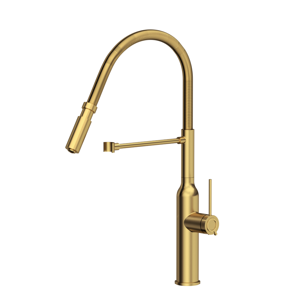 MARILYN Q LINE SteelQ Nano PVD złoty Złota bateria idealnie pasuje do najnowszych trendów! Aż 54,5 cm wysokości to ułatwienie podczas zmywania dużych naczyń! Elementy baterii wykonane ze stali szlachetnej - gwarantuje wysoką trwałość i zerową zawartość ołowiu. Perlator ECO - zapewnia oszczędność wody. Dźwignia jednouchwytowa– w łatwy i szybki sposób dostosujesz temperaturę i natężenie strumienia wody do swoich potrzeb. Głowica ceramiczna - zmniejsza możliwość powstawania kamiennych osadów i zanieczyszczeń. Mocowanie QFix - zapewnia łatwy i szybki montaż (również na blacie) oraz wysoką stabilność baterii. Wyciągana wylewka – idealna do mycia dużych naczyń. Wyciągany wąż wylewki umożliwia wygodne napełnienie wodą naczynia znajdującego się w i poza zlewozmywakiem jak również umycie blatu. Stal szlachetna – niezwykły materiał Stal szlachetna charakteryzuje się wyjątkowymi właściwościami. Stal szlachetna to materiał, którego powierzchnia jest idealnie gładka (pozbawiona porów), dzięki czemu drobnoustroje i zanieczyszczenia nie przylegają do niej. Jest higieniczna i daje się łatwo wyczyścić. A jednocześnie jest bardzo wytrzymała. Jest to materiał ekologiczny i po przetopieniu może zostać ponownie wykorzystany. Pb FREE – materiał pozbawiony ołowiu Najbardziej niebezpiecznym dla zdrowia zanieczyszczeniem materiałów instalacyjnych jest ołów. Ołów jest bardzo szkodliwym dla zdrowia metalem ciężkim pojawiającym się w wodzie pitnej, która miała kontakt z instalacją wodociągową wykonaną przy użyciu elementów zawierających przekroczone, niedozwolone normami ilości ołowiu. Obecnie dopuszczalna zawartość ołowiu w wodzie nie może przekroczyć wartości maksymalnej 0,01 mg/l. Uznani producenci złączek i armatury stosują do produkcji elementów instalacji wodnych wyłącznie materiały zgodne z normami lub bezołowiowe. Stal szlachetna wykorzystywana do produkcji naszych baterii kuchennych jest wolna nawet od śladowych ilości ołowiu. QFix to prosty i szybki montaż baterii Bateria wyposażona jest standardowo w innowacyjny system montażu QFix, dzięki czemu instalację baterii zarówno na zlewozmywaku jak i na blacie kuchennym można prosto wykonać bez użycia narzędzi. System QFix to oszczędność czasu i nerwów! W komplecie aż 40 cm wężyki podłączeniowe wody 3/8", mocowanie QFix, uszczelki, instrukcja montażu. Bateria zapakowana w wytrzymałe opakowanie tekturowe i specjalną piankę dla lepszej ochrony powierzchni baterii.