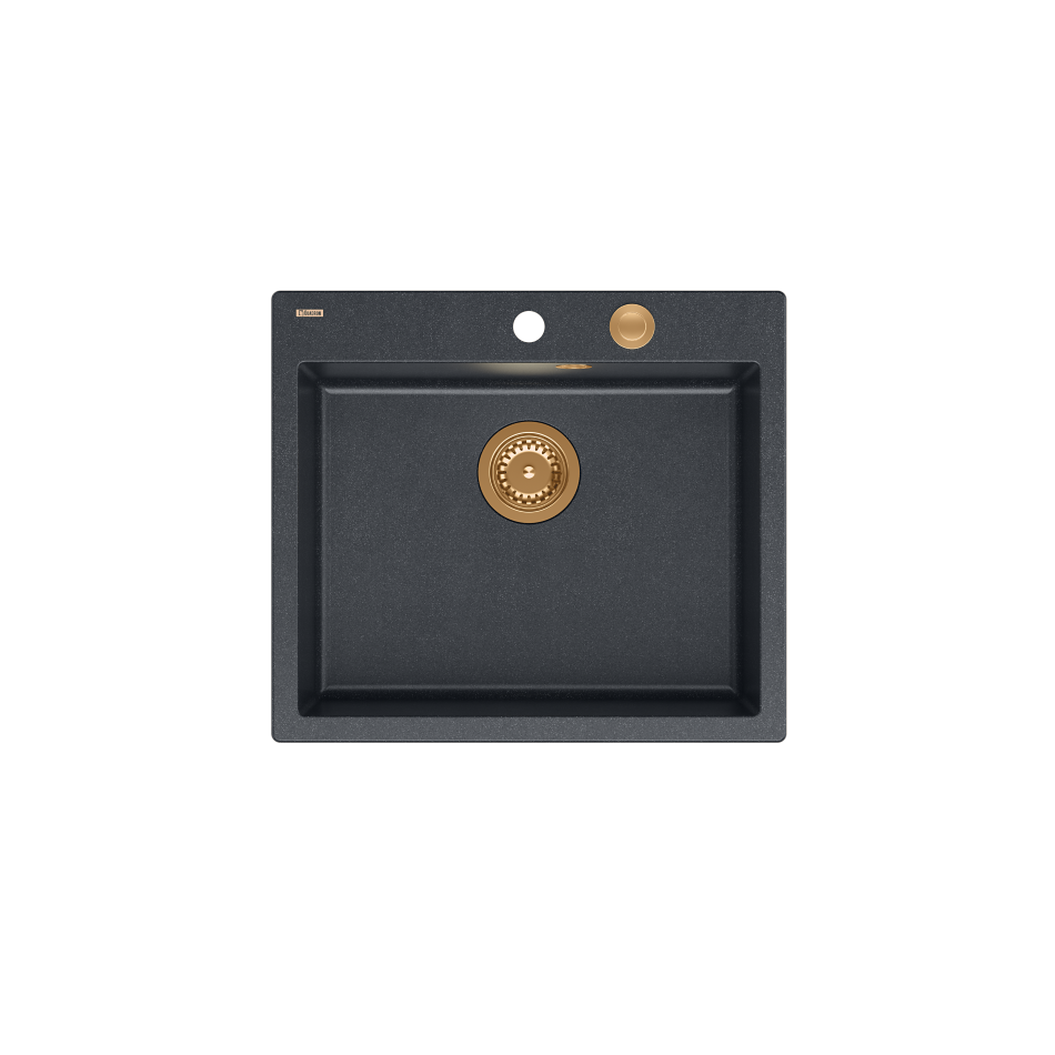 MORGAN 110 GraniteQ zlewozmywak black diamond z syfonem Push To Open kol. miedziany 1-komorowy b/o + zaczepy 4 szt