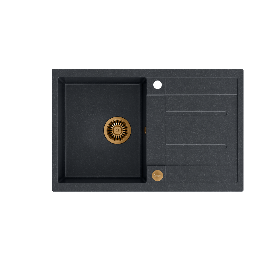 MORGAN 111 GraniteQ black diamond/elementy miedziane Zlewozmywak wykonany z GraniteQ gwarantuje najwyższą higieniczność i trwałość . Nowoczesne wzornictwo – dostosowane do aktualnych trendów. GraniteQ – zapewnia dużą twardość, trwałość i higieniczność powierzchni Zlewozmywak odwracalny – komora może być zamontowana po prawej lub lewej stronie. Rozetka przelewu również wykonana jest ze stali szlachetnej SteelQ w technologii PVD w kolorze dopasowanym do koloru pozostałych elementów co jeszcze bardziej podkreśla jego urodę. Zlewozmywak wyposażony jest w odpływ ze stali szlachetnej SteelQ w technologii PVD w kolorze dopasowanym do pozostałych elementów co nadaje produktowi elegancki wygląd oraz w syfon z możliwością podłączenia zmywarki lub pralki Głębokie i pojemne komory zlewozmywaków Quadron to ich cecha wyróżniająca, która zapewnia duży komfort użytkowania. Łatwy montaż - w komplecie zaczepy mocujące Wersja Premium Głębokie komory zlewozmywaków Quadron to ich cecha wyróżniająca. Pojemna komora to przede wszystkim duży komfort użytkowania. Zmywanie dużych garnków czy blach nie stanowi problemu dzięki temu, że pojemność zlewozmywaka jest zwiększona o kilka litrów. Zlewozmywak wyposażony jest w odpływ ze stali szlachetnej SteelQ w technologii PVD w wybranym kolorze co nadaje mu elegancki wygląd. GraniteQ - wygląd & trwałość Produkty wykonane z GraniteQ zapewniają nowoczesny wygląd i długowieczność produktu. Są łatwe do utrzymania w czystości, odporne na wysokie temperatury (gorące garnki) oraz tak częste w kuchni nagłe jej zmiany (wrząca i zimna woda), odporne na działanie czynników chemicznych oraz wiele rodzajów osadów (np. po kawie czy herbacie). GraniteQ – wytrzymałość & higiena Materiał GraniteQ stworzony jest z drobnych cząsteczek granitu (75-80%) połączonych ze sobą za pomocą wysokiej jakości spoiwa (20-25%), dzięki czemu zlewozmywak charakteryzuje się wyjątkową wytrzymałością i odpornością. Zastosowanie bardzo drobnych cząsteczek granitu minimalizuje przestrzeń wypełnioną spoiwem, dzięki czemu udało się uzyskać zlewozmywak jedwabiście gładki i delikatny w dotyku, co również ma ogromne znaczenie podczas czyszczenia i konserwacji, ale przede wszystkim dla higieny i zachowania czystości. GraniteQ – metaliczny blask GraniteQ to nowoczesny materiał w opalizujących kolorach uzyskanych dzięki domieszce metalicznych drobinek. Nawet najbardziej wymagający użytkownicy będą usatysfakcjonowani gdy światło z oświetlenia umieszczonego nad blatem sprawi, iż kuchnia zabłyszczy delikatnym połyskiem swojej nowej biżuterii: zlewozmywaka marki Quadron. Efekt ten zostanie spotęgowany dzięki dodaniu baterii, odpływu i przelewu wykonanych ze stali szlachetnej SteelQ w technologii PVD w kolorach złota lub miedzi.