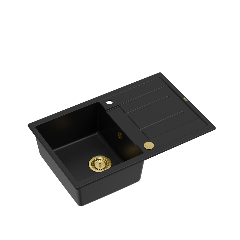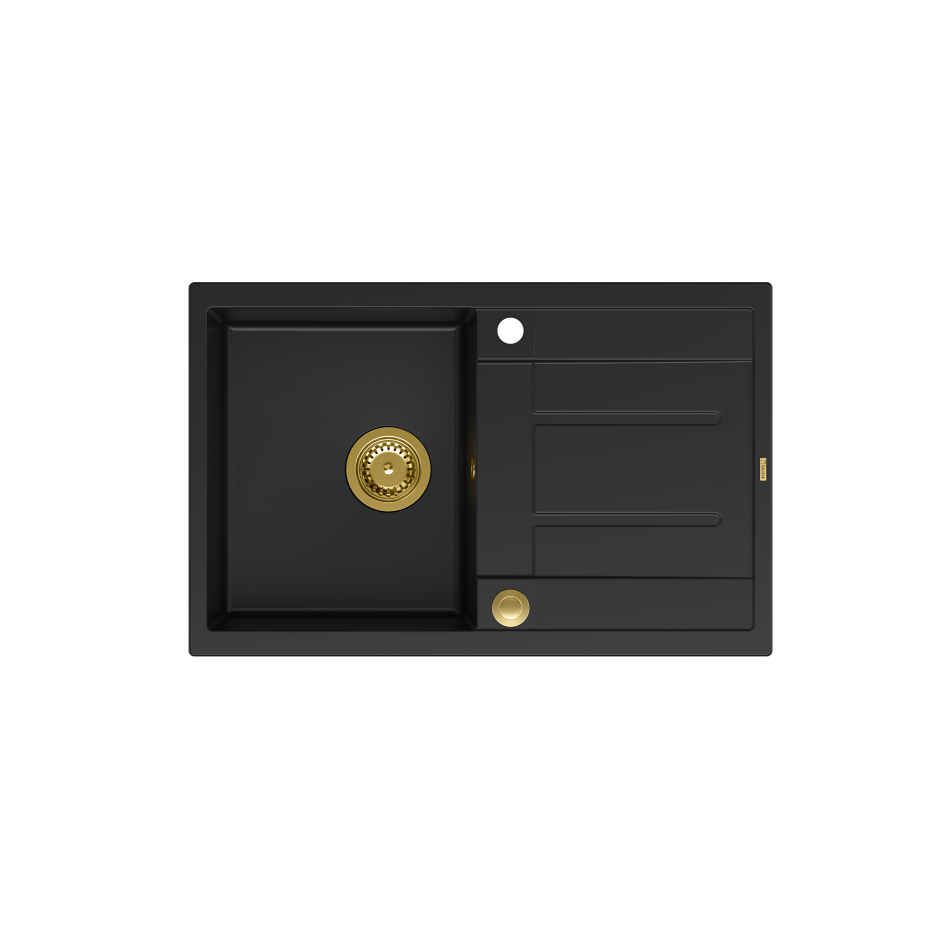 MORGAN 111 GraniteQ zlewozmywak pure carbon z syfonem Push To Open 1-komorowy z/o / elementy złoteMORGAN 111 GraniteQ zlewozmywak pure carbon z syfonem Push To Open 1-komorowy z/o / elementy złote