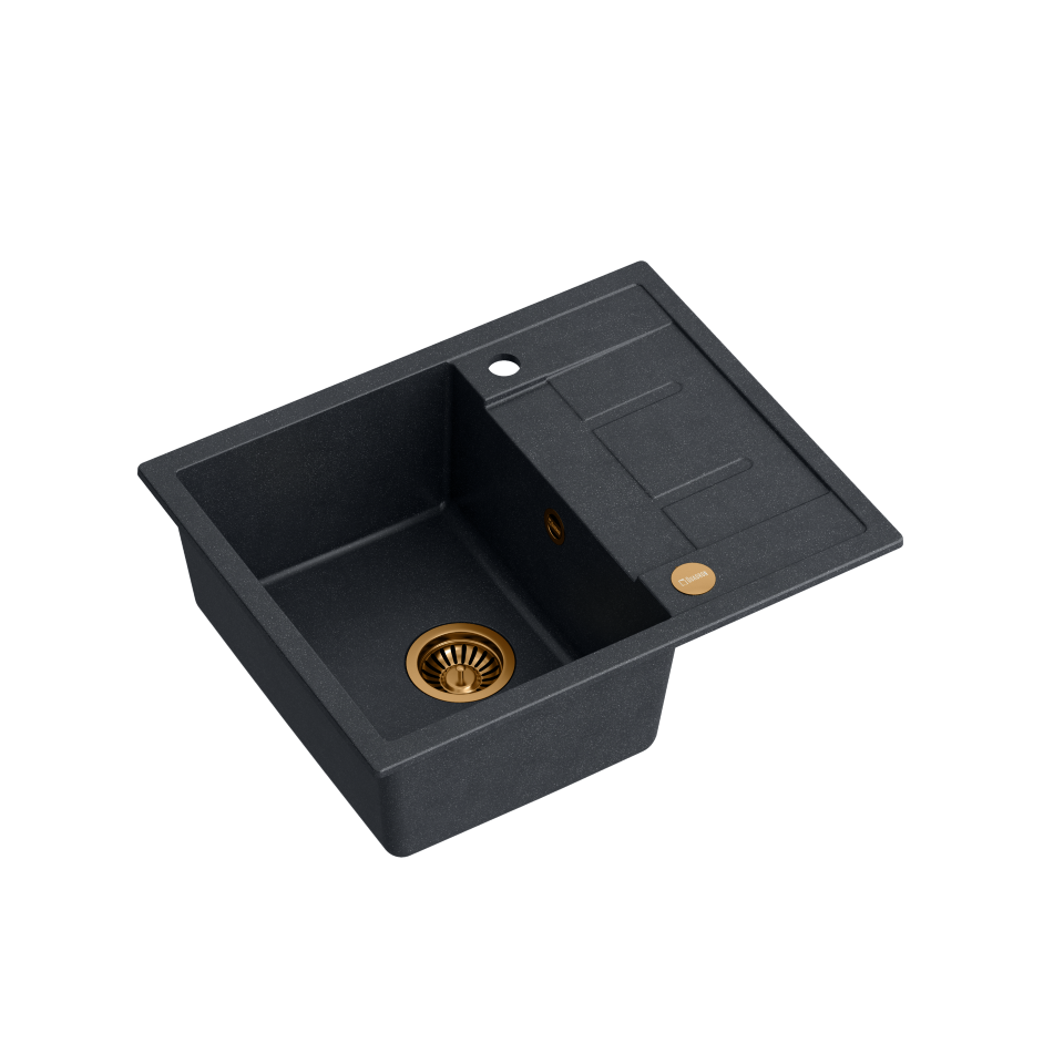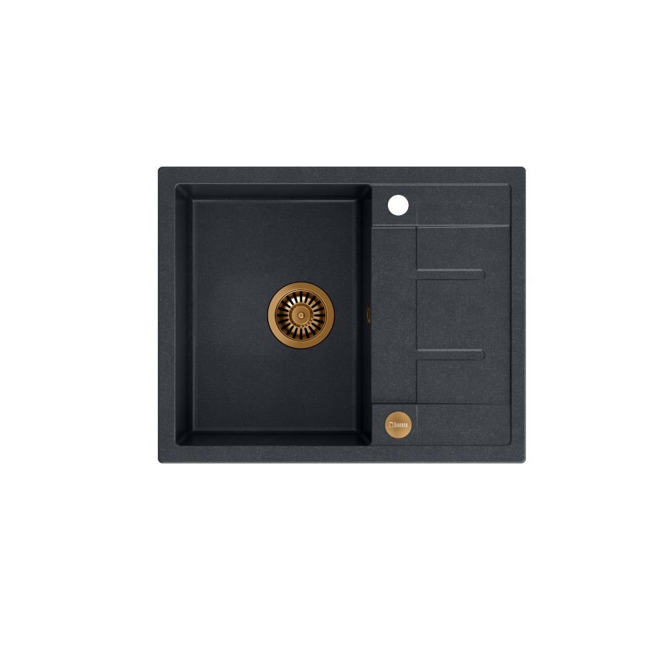 MORGAN 116 GraniteQ black diamond/elementy miedziane Zlewozmywak wykonany z GraniteQ gwarantuje najwyższą higieniczność i trwałość . Nowoczesne wzornictwo – dostosowane do aktualnych trendów. GraniteQ – zapewnia dużą twardość, trwałość i higieniczność powierzchni Zlewozmywak odwracalny – komora może być zamontowana po prawej lub lewej stronie. Rozetka przelewu również wykonana jest ze stali szlachetnej SteelQ w technologii PVD w kolorze dopasowanym do koloru pozostałych elementów co jeszcze bardziej podkreśla jego urodę. Zlewozmywak wyposażony jest w odpływ ze stali szlachetnej SteelQ w technologii PVD w kolorze dopasowanym do pozostałych elementów co nadaje produktowi elegancki wygląd oraz w syfon z możliwością podłączenia zmywarki lub pralki Głębokie i pojemne komory zlewozmywaków Quadron to ich cecha wyróżniająca, która zapewnia duży komfort użytkowania. Łatwy montaż - w komplecie zaczepy mocujące Wersja Premium Głębokie komory zlewozmywaków Quadron to ich cecha wyróżniająca. Pojemna komora to przede wszystkim duży komfort użytkowania. Zmywanie dużych garnków czy blach nie stanowi problemu dzięki temu, że pojemność zlewozmywaka jest zwiększona o kilka litrów. Zlewozmywak wyposażony jest w odpływ ze stali szlachetnej SteelQ w technologii PVD w wybranym kolorze co nadaje mu elegancki wygląd. GraniteQ - wygląd & trwałość Produkty wykonane z GraniteQ zapewniają nowoczesny wygląd i długowieczność produktu. Są łatwe do utrzymania w czystości, odporne na wysokie temperatury (gorące garnki) oraz tak częste w kuchni nagłe jej zmiany (wrząca i zimna woda), odporne na działanie czynników chemicznych oraz wiele rodzajów osadów (np. po kawie czy herbacie). GraniteQ – wytrzymałość & higiena Materiał GraniteQ stworzony jest z drobnych cząsteczek granitu (75-80%) połączonych ze sobą za pomocą wysokiej jakości spoiwa (20-25%), dzięki czemu zlewozmywak charakteryzuje się wyjątkową wytrzymałością i odpornością. Zastosowanie bardzo drobnych cząsteczek granitu minimalizuje przestrzeń wypełnioną spoiwem, dzięki czemu udało się uzyskać zlewozmywak jedwabiście gładki i delikatny w dotyku, co również ma ogromne znaczenie podczas czyszczenia i konserwacji, ale przede wszystkim dla higieny i zachowania czystości. GraniteQ – metaliczny blask GraniteQ to nowoczesny materiał w opalizujących kolorach uzyskanych dzięki domieszce metalicznych drobinek. Nawet najbardziej wymagający użytkownicy będą usatysfakcjonowani gdy światło z oświetlenia umieszczonego nad blatem sprawi, iż kuchnia zabłyszczy delikatnym połyskiem swojej nowej biżuterii: zlewozmywaka marki Quadron. Efekt ten zostanie spotęgowany dzięki dodaniu baterii, odpływu i przelewu wykonanych ze stali szlachetnej SteelQ w technologii PVD w kolorach złota lub miedzi.