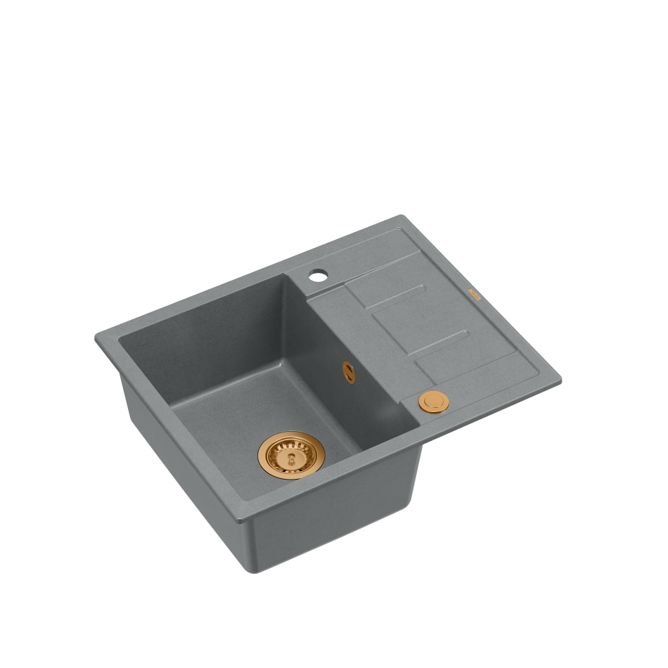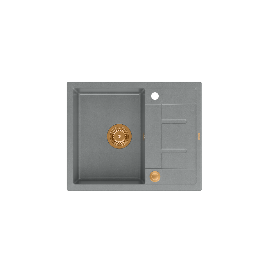 MORGAN 116 GraniteQ zlewozmywak silver stone z syfonem Push To Open kol. miedziany 1-komorowy z/o + zaczepy 4 sztMORGAN 116 GraniteQ zlewozmywak silver stone z syfonem Push To Open kol. miedziany 1-komorowy z/o + zaczepy 4 szt