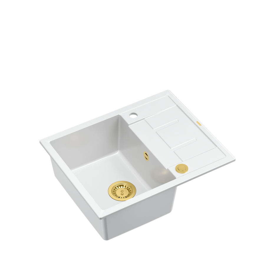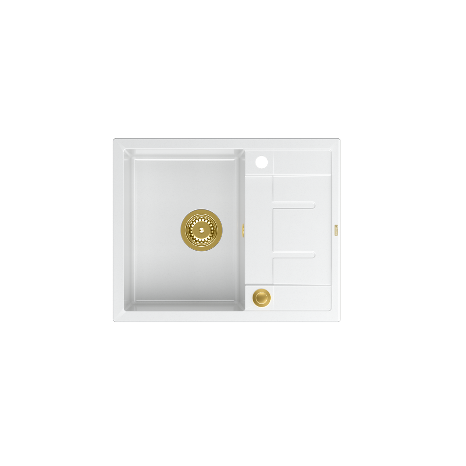 MORGAN 116 GraniteQ zlewozmywak snow white z syfonem Push To Open kol. złoty 1-komorowy z/o + zaczepy 4 szt