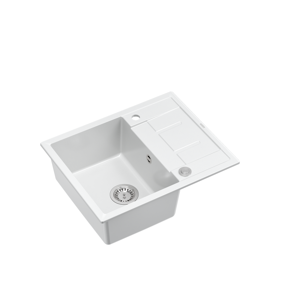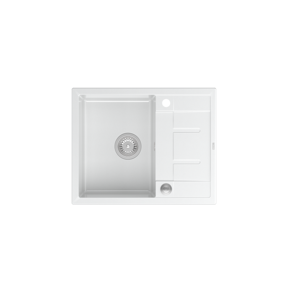 MORGAN 116 GraniteQ zlewozmywak snow white z syfonem Push To Open stal szlachetna 1-komorowy z/o + zaczepy 4 sztMORGAN 116 GraniteQ zlewozmywak snow white z syfonem Push To Open stal szlachetna 1-komorowy z/o + zaczepy 4 szt
