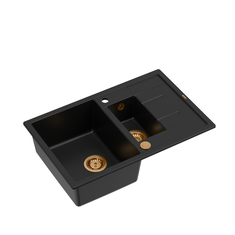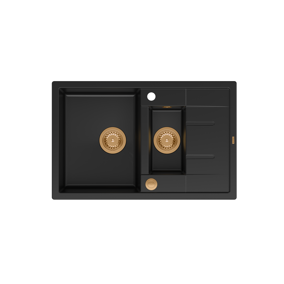 MORGAN 156 GraniteQ zlewozmywak pure carbon z syfonem Push To Open okrągły 1,5-komorowy z/o /elementy miedzianeMORGAN 156 GraniteQ zlewozmywak pure carbon z syfonem Push To Open okrągły 1,5-komorowy z/o /elementy miedziane