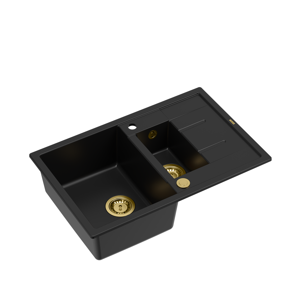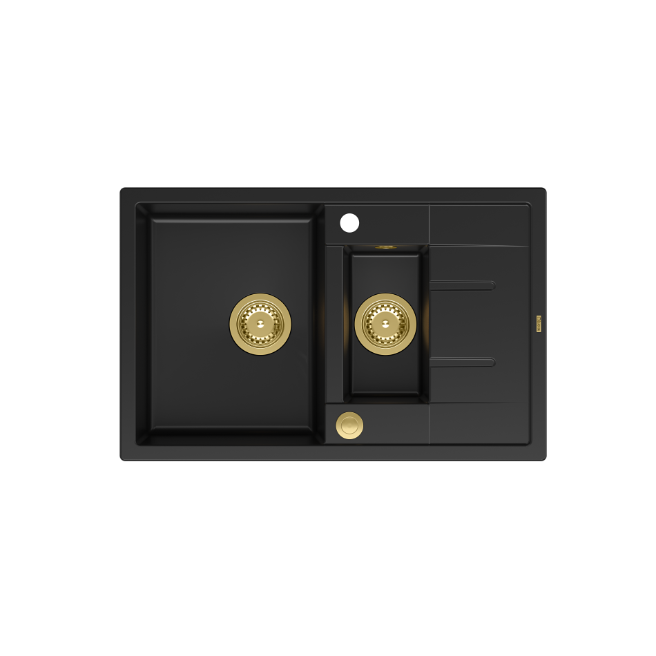 MORGAN 156 GraniteQ zlewozmywak pure carbon z syfonem Push To Open okrągły 1,5-komorowy z/o / elementy złoteMORGAN 156 GraniteQ zlewozmywak pure carbon z syfonem Push To Open okrągły 1,5-komorowy z/o / elementy złote