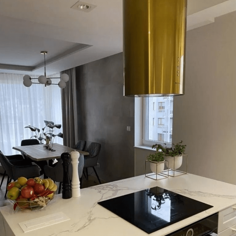 Opis:Krótki opis: klasa energetyczna B, wyspowy, szer. 39 cm, sterowanie klawiszami Soft-Touch, zakres prędkości: 3 biegi + boost, wydajność max. 742 m3/h, głośność min. 46 dB, wykonanie: stal szlachetna lakierowana na kolor złoty, oświetlenie POWER LED 4 x 2 W. Linia GLOBALO ExclusiveZalety i korzyści dla użytkownika okapu Cylindro Isola 39.6 GoldCylindryczny okap wyspowy to efektowne urządzenie, dzięki któremu wyspa kuchenna będzie nie tylko ozdobą pomieszczenia, ale również komfortową powierzchnią roboczą, znakomicie przystosowaną do przygotowywania posiłków. Maksymalna wydajność: 742 m3/h Klawisze Soft-Touch Cicha praca: min. 46 dBFunkcjonalności: Okap wyspowy Cylindro Isola 39.6 Gold to urządzenie, które dostępne jest zarówno jako wyciąg, jak i jako pochłaniacz. Wyciąg odprowadzi zassane powietrze oraz parę wodną na zewnątrz pomieszczenia. Może on być zastosowany jedynie w przypadku, gdy kuchnia posiada podłączenie do kanału wentylacyjnego. Pochłaniacz natomiast oczyści powietrze i wtłoczy je z powrotem do pomieszczenia. Okap wyspowy posiada filtr aluminiowy, a w przypadku działania jako pochłaniacz - można go także wyposażyć w filtr węglowy. Filtr aluminiowy to podstawowy element wyposażenia okapu - oczyszcza on powietrze z tłustych cząsteczek, dzięki czemu nie osiadają one na powierzchni sprzętów kuchennych i mebli. Natomiast filtr węglowy (trzeba zakupić go oddzielnie) oczyszcza powietrze z zapachów. Urządzenie wyróżnia się cichą pracą (minimalna głośność to zaledwie 46 dB). Komfortowe oświetlenie typu Power LED zapewnia dobre warunki do przygotowywania posiłków. 3 stopnie prędkości oraz funkcja boost pozwalają na idealne dostosowanie szybkości odprowadzania powietrza do aktualnych warunków panujących w kuchni. Sterowanie odbywa się za pomocą klawiszy Soft-Touch, a panel wyposażono dodatkowo w wyświetlacz LED. Pracę urządzenia wspomaga wyłącznik czasowy, który pozwala nam na ustawienie czasu (10-90 minut), po którym okap ma zakończyć pochłanianie oparów.Kolor złoty:Złoty kolor okapu w zależności od barwy i intensywności oświetlenia w kuchni może przybierać różny odcień złota. Obydwie okrągłe maskownice (górna i dolna część) są malowane w tym samym czasie i tym samym kolorem. Górna maskownica posiada mniejszą średnicę niż dolna część okapu, co może powodować inne odbicie światła i dawać złudzenie innego odcienia koloru.Przeznaczenie:Okap ten przeznaczony jest do montażu nad wyspą kuchenną. Można go również zaaranżować jako okap przyścienny montując go do sufitu blisko ściany.Materiały:Do produkcji okapu wyspowego Cylindro Isola 39.6 Gold zastosowano stal szlachetną (Inox), która została pomalowana na kolor złoty.Id produktu Id99#