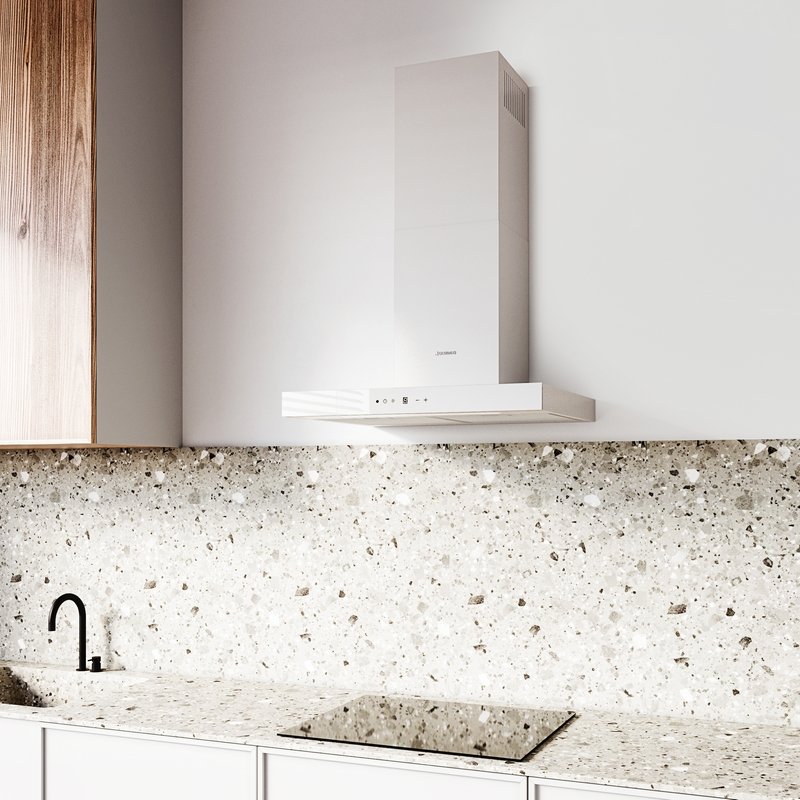 Opis:Klasa energetyczna: B, przyścienny, szer. 60 cm, gł. 50 cm, sensorowe (dotykowe) ze wskaźnikiem LED, zakres prędkości: 3 + boost, wydajność max. 596 m3/h, głośność min. 46 dB, wykonanie: białe hartowane szkło, stal lakierowana na biało, oświetlenie LED 4W. Linia GLOBALO DesignOkap przyścienny GLOBALO LONATIO 60.1 WHITECzarny okap T-Line to nowoczesne urządzenie kuchenne, które doskonale łączy funkcjonalność, wydajność i stylowy design. Ten elegancki okap został zaprojektowany, aby efektywnie usuwać zapachy, opary i tłuszcze podczas gotowania, dbając o czyste i świeże powietrze w twojej kuchni.Okap przyścienny GLOBALO LONATIO 60.1 w kolorze białymFunkcjonalności: Okap przyścienny Lonatio 60.1 White może funkcjonować w jednym z dwóch trybów: pochłaniacz oczyszcza powietrze, które następnie wraca do pomieszczenia kuchennego, a wyciąg wyprowadza opary poza mieszkanie. W przypadku wyciągu niezbędne jest podłączenie sprzętu do kanału wentylacyjnego za pomocą dodatkowych elementów. Wielowarstwowy, wzmacniany filtr aluminiowy gromadzi tłuste cząsteczki, a także zapobiega ich osadzaniu się na szafach i sprzętach, za to filtr węglowy pochłania brzydkie zapachy. Filtr węglowy można zakupić dodatkowo – warto jednak pamiętać, że jest przydatny wyłącznie, gdy decydujemy się na wykorzystanie urządzenia w trybie pochłaniacza. Lonatio 60.1 White posiada przyjazne dla wzroku, a przede wszystkim energooszczędne oświetlenie LED. Dodatkowa iluminacja rozjaśni nam nieco przestrzeń roboczą. Prezentowany okap kuchenny posiada praktyczny, intuicyjny panel sensorowy oraz czytelny wskaźnik LED – wszystko po to, by jego obsługa była czystą przyjemnością. Urządzenie może pracować w 4 prędkościach (3 + funkcja boost). Możemy zatem samodzielnie ustawić wydajność urządzenia – taką, jaka w danym momencie jest potrzebna.Przeznaczenie: Ten klasyczny design okapu kuchennego Lonatio 60.1 White sprawdzi się w jasnych, przestronnych wnętrzach.Materiały: Przyścienny okap kuchenny wykonany został z wysokiej jakości materiałów – solidnej stali lakierowanej oraz hartowanego szkła – w kolorze białym.Dobrze wiedzieć! Do konserwacji materiałów, z których wykonano sprzęt, warto użyć specjalnego preparatu marki Berner (Wonderclean – do stali lakierowanej oraz Active – do szkła). Do okapu Lonatio pasują filtry węglowe ASC 200Id produktu Id#