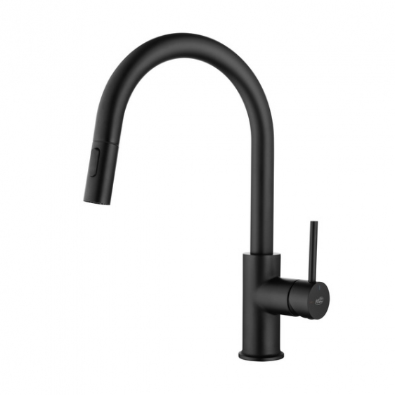 BATERIA Z WYCIĄGANĄ WYLEWKĄ Z PRZEŁĄCZNIKIEM STRUMIENIA WODY!Zintegrowany magnes umożliwiający szybkie chowania końcówki wylewki– wykończenie: CZARNY MAT– materiał: mosiądz– rączka mieszacza odchyla się do przodu, dzięki czemu można montować baterię pomiędzy zlewozmywakiem podwieszanym a ścianą.– głowica ceramiczna– wylewka obrotowa 360°– elastyczne wężyki podłączeniowe 3/8“ – min. 450 mm
