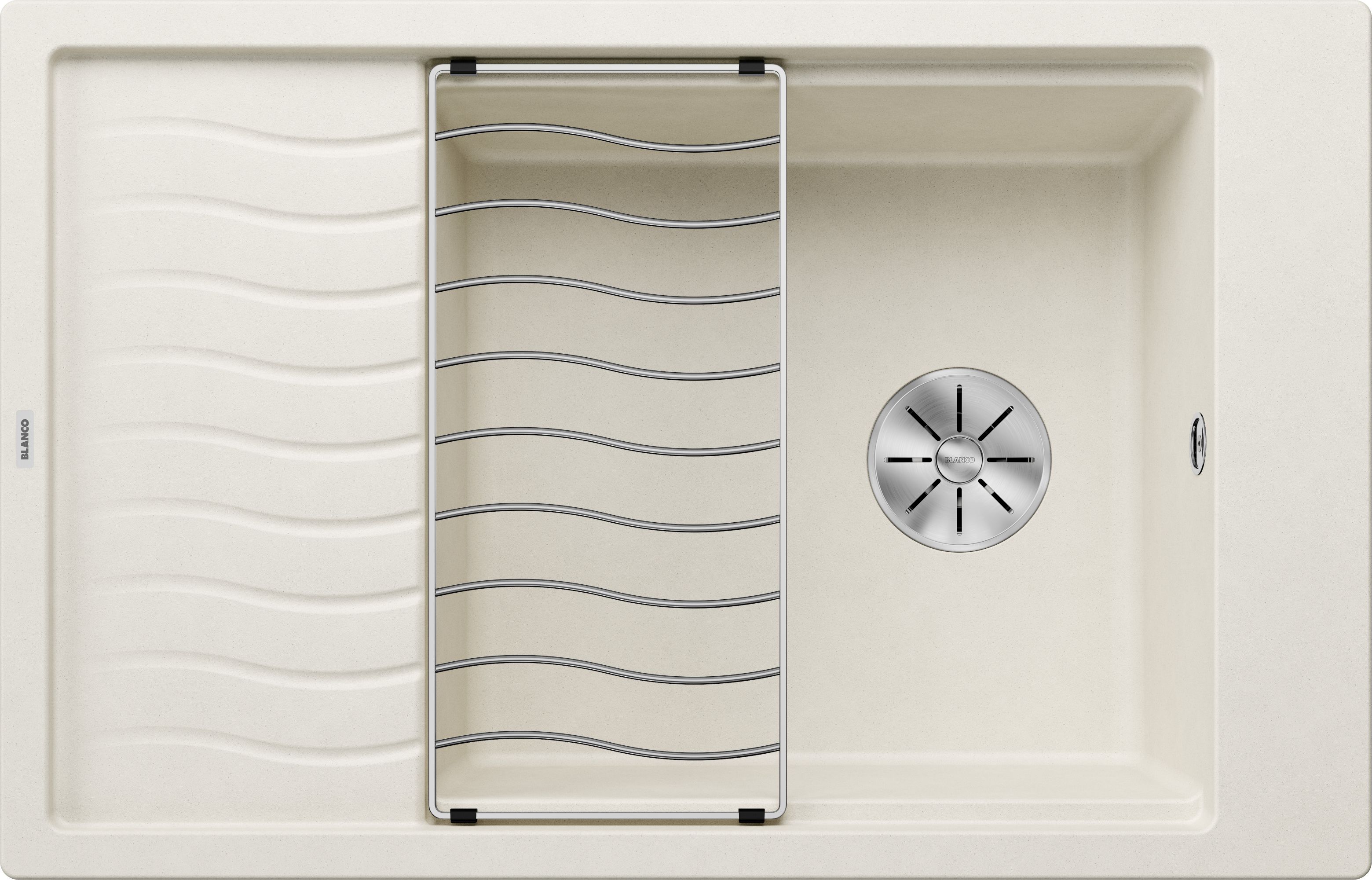 Zlewozmywaki z rodziny BLANCO ELON wyróżniają się przede wszystkim połączeniem dużej komory i zwiększonej powierzchni ociekacza, przy równoczesnym zachowaniu kompaktowych wymiarów zewnętrznych. BLANCO ELON XL 8 S jest przeznaczony do montażu w szafce o szerokości 80 cm - dla jeszcze większego komfortu podczas przygotowywania posiłków i zmywania naczyń. Do małych kuchni polecamy model BLANCO ELON 45 S, który zapewnia maksymalne wykorzystanie przestrzeni na niewielkiej powierzchni. Dzięki przesuwanej kratce ociekowej ze stali szlachetnej, we wszystkich trzech modelach BLANCO ELON można zyskać dodatkowe miejsce do odstawiania umytych naczyń, nie ograniczając przy tym korzystania z komory zlewozmywaka. Nowoczesny, falisty design kratki ociekowej jest powtórzony na ociekaczu, co sprawia, że są one do siebie doskonale dopasowane. Praktyczną kratkę ociekową, zawartą w cenie zlewozmywaka, można wykorzystać do serwowania potraw, np. jako dekoracyjną podkładkę pod gorące naczynia.
