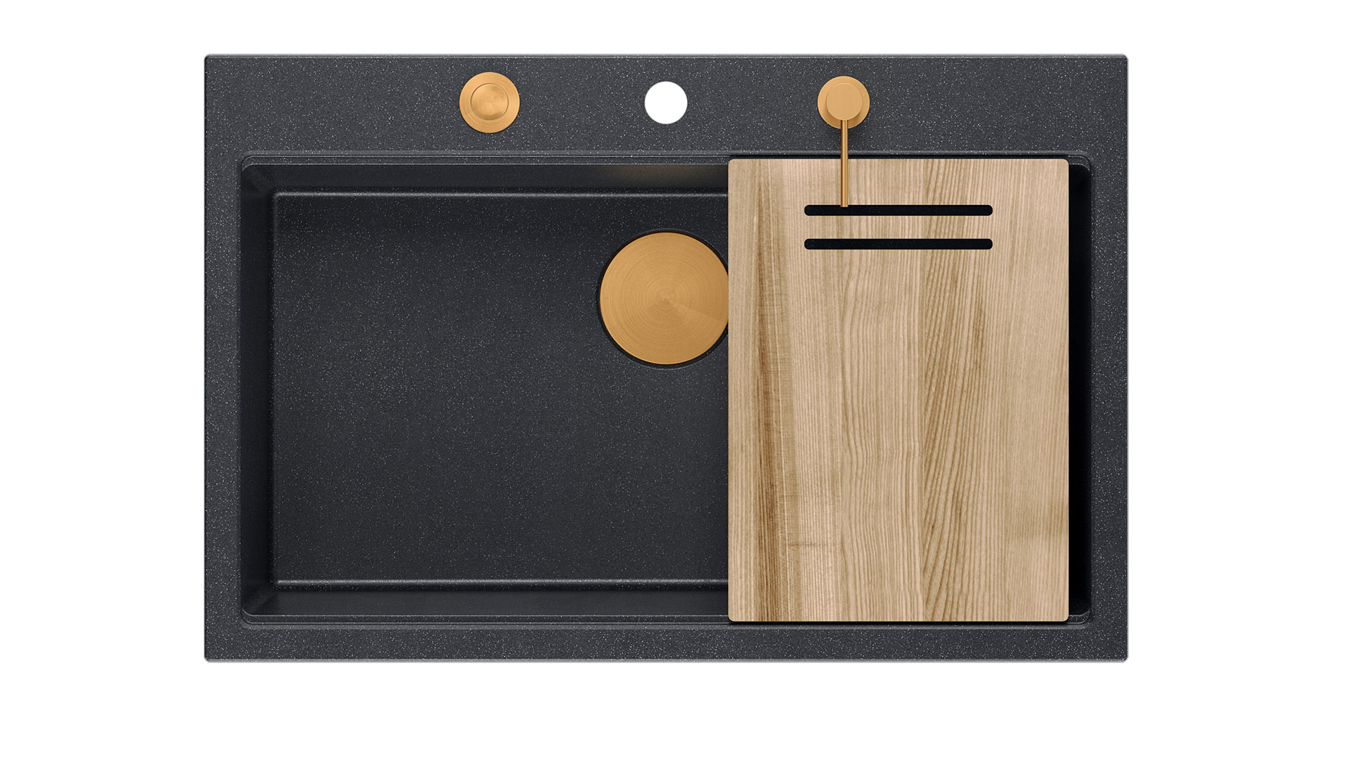 Zlewozmywak granitowy MARC Zlewozmywaki GraniteQ wytwarzane są z drobnych cząsteczek granitu (75-80% finalnego wyrobu) - połączonych ze sobą wysokiej jakości spoiwem - dzięki czemu charakteryzują się wyjątkową wytrzymałością oraz odpornością na zróżnicowane temperatury i charakter wykonywanych w ich obrębie prac. Dodatkowo GraniteQ dostępny jest również w opalizujących kolorach uzyskanych dzięki domieszce metalicznych drobinek. Nawet najbardziej wymagający użytkownicy będą usatysfakcjonowani, gdy oświetlenie nad blatem sprawi, iż kuchnia zabłyszczy delikatnym połyskiem swojej nowej „biżuterii”. Efekt ten może zostać spotęgowany dzięki akcesoriom ze stali szlachetnej, pokrytej w technologii PVD - w kolorach złota oraz miedzi. Zlewozmywaki granitowe marki Quadron są przyjemnie gładkie i delikatne w dotyku, co ma znaczenie również dla zachowania czystości i higieny. Marc Workstation GraniteQ - to kolekcja dla użytkowników oczekujących rozbudowanej funkcjonalności zlewozmywaka. W przypadku tego modelu, dzięki zastosowaniu bardzo dużej, 61 -litrowej komory, wygodnie opłuczemy i umyjemy nawet duże blachy z piekarnika! Wariant ze stalową armaturą , uzupełniony jest dodtkowo o trzy funkcjonalne akcesoria w tym samym kolorze ( Qmata , dozownik , wkładka ) oraz drewniana deska kuchenna. Natomiast zlewy z armaturą w powłoce PVD , w komplecie otrzymują jeden* dodatkowy element wyposażenia kuchennego ( dozownik ) oraz drewniana deska kuchenna Model MARC , przeznaczeny do intensywnego użytkowania, nie wyklucza eleganckiego i stylowego wyglądu! W skład zestawu wchodzi: zlewozmywak w kolorze black diamond - czarny granit z domieszką metalicznych drobinek 4 szt. zaczepów do zlewozmywaka wpuszczanego stalowa nakładka na odpływ ø 115 mm w kolorze miedzi dozownik na mydło/płyn o pojemności 350 ml w kolorze miedzi przyścienny odpływ Push-2-Open 3 1/2" z syfonem Save Space drewniana, jesionowa deska do krojenia o wymiarze 38 x 28 x 2 cm Technologia PVD – biżuteria w kuchni Powierzchnia stali szlachetnej SteelQ została uszlachetniona metodą naparowywania gazowego. Jest to obecnie najtrwalsza powłoka, której metoda polega na umieszczeniu produktu ze stalii szlachetnej w komorze próżniowej i nanoszeniu pod ciśnieniem rozpylonych cząsteczek innych metali (azotków cyrkonu, tytanu, chromu). Metoda PVD jest zdecydowanie bardziej kosztowna od tradycyjnych sposobów nanoszenia powłok dlatego stosowana jest również przez ceniących sobie wysoką jakość, renomowanych producentów zegarków i uznane firmy jubilerskie na świecie przy pozłacaniu. Zachęcamy do pobrania katalogu , w którym znajdą Państwo wszystkie nasze modele produktów w pełnej kolorystyce. *istnieje możliwość dokupienia pasującej do zlewozmywaka Marc Qmaty z powłoką PVD (złoto lub miedź)